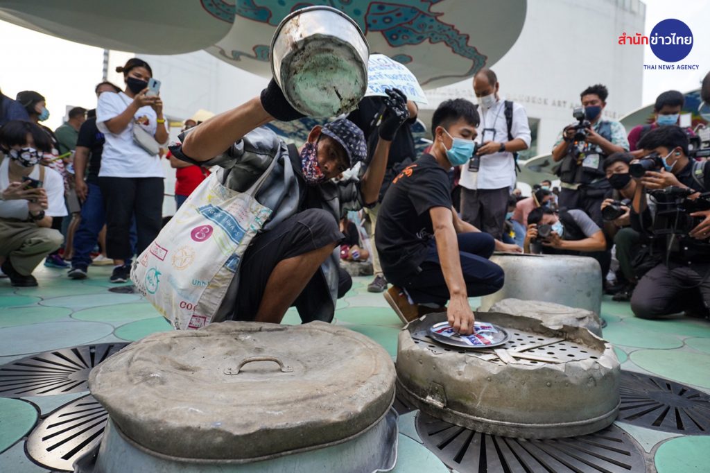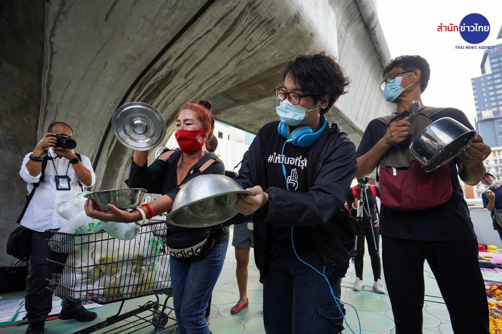 กลุ่มมวลชนราษฎร นำโดยนายภานุพงศ์ จาดนอก หรือ ไมค์ ระยอง และ น.ส.ปนัสยา สิทธิจิรวัฒนกุล หรือ รุ้ง นัดรวมตัวกันที่สกายวอล์ก แยกปทุมวัน โดยมวลชนที่มาชุมนุมต่างนำอุปกรณ์ในการร่วมกิจกรรมมาด้วย เช่น หม้อ ตะหลิว กระทะ เป็นต้น ทำให้บรรยากาศโดยรอบ มีทั้งเสียงเพลง และเสียงเคาะอุปกรณ์ต่างๆ ดังไปรอบบริเวณ