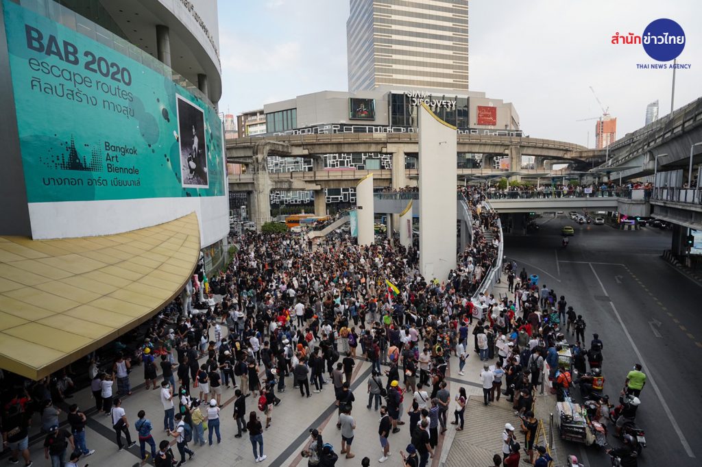 ม็อบราษฎร ชุมนุมตีหม้อกลางสกายวอล์ก แยกปทุมวัน ก่อนประกาศลงถนน บอกนายกฯ หยุดเล่น Tiktok…โพสต์โดย สำนักข่าวไทย เมื่อ วันพุธที่ 10 กุมภาพันธ์ 2021