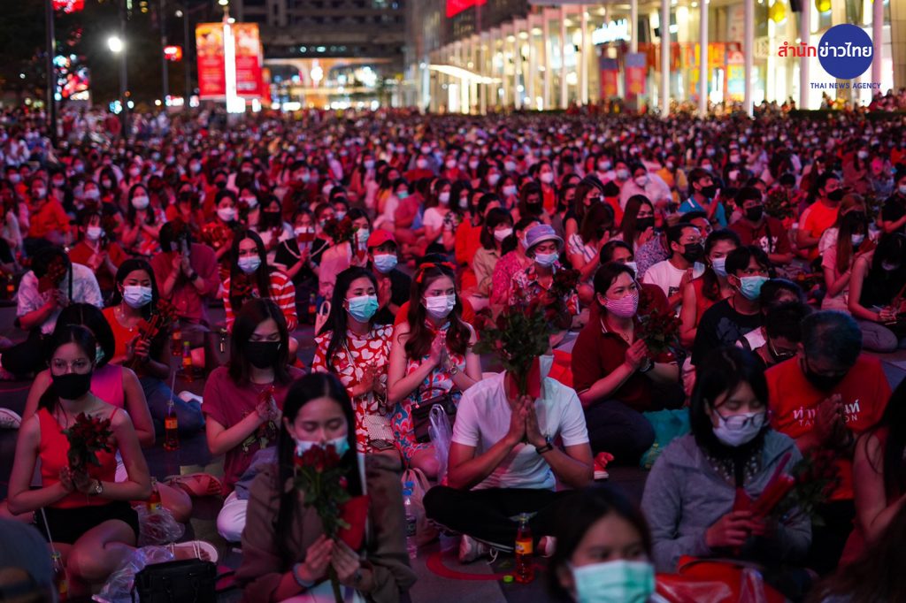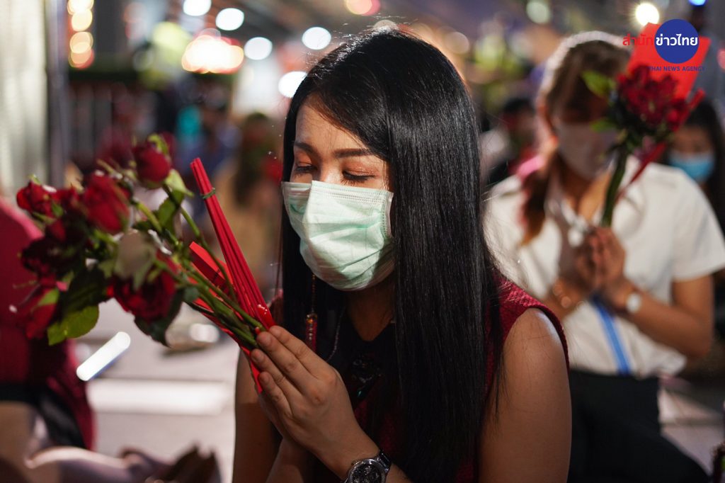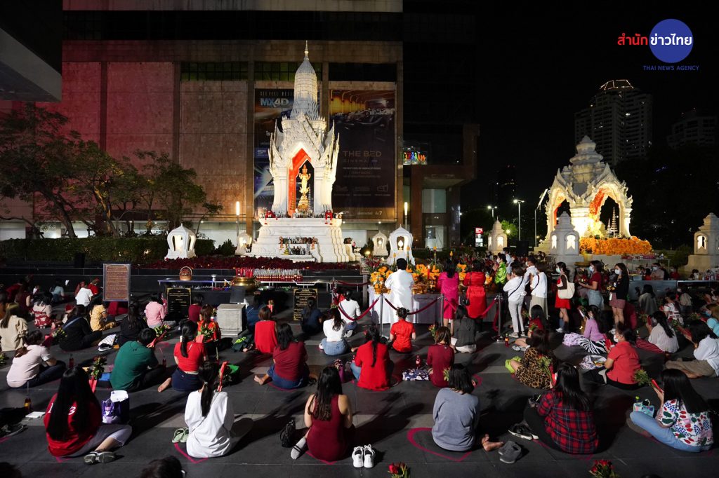 คนโสดขอพรความรักคึกคัก ฉลอง #วาเลนไทน์ . บรรยากาศประชาชนที่มาร่วมพิธีบวงสรวง #พระตรีมูรติ หน้าศูนย์การค้าเซ็นทรัลเวิลด์…