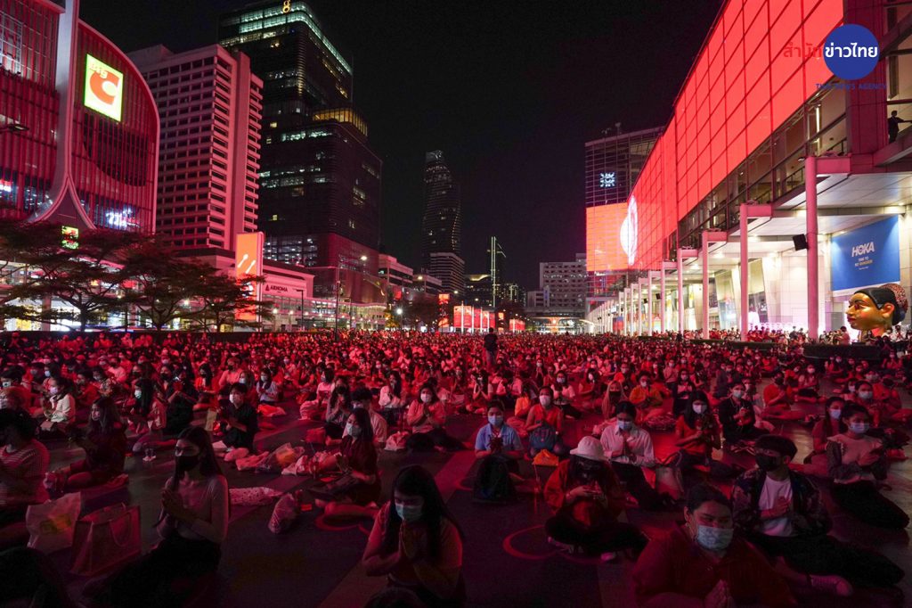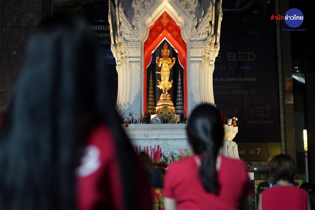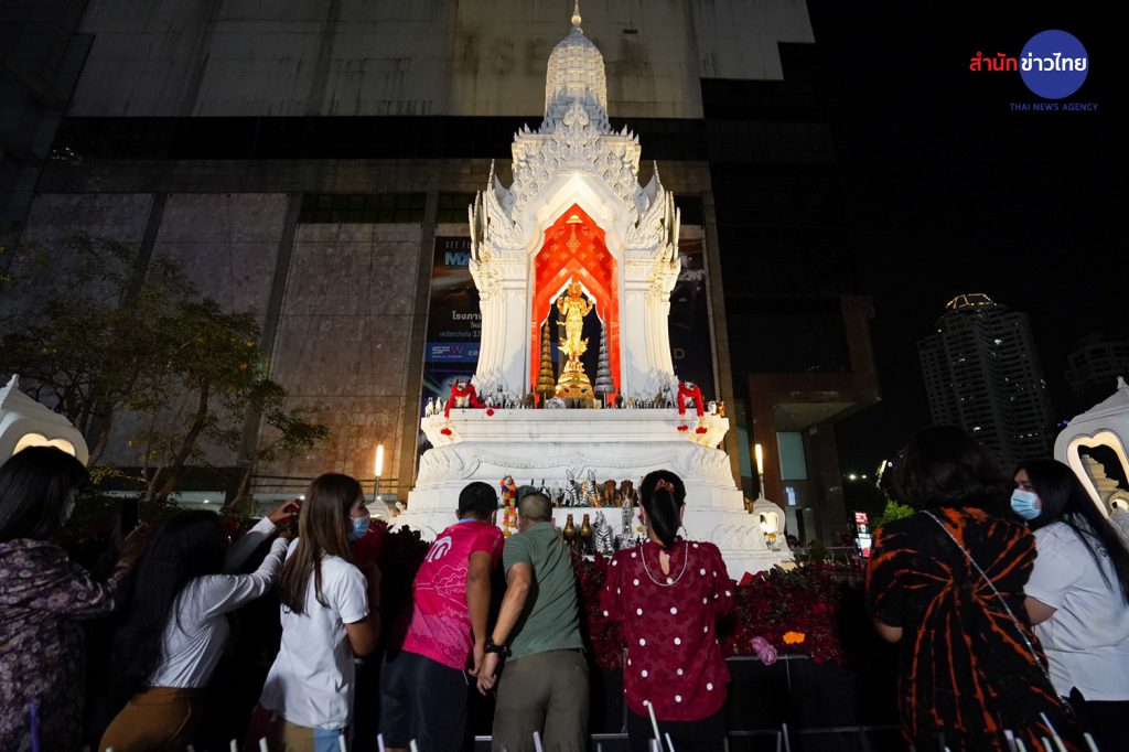บรรยากาศประชาชนที่มาร่วมพิธีบวงสรวง #พระตรีมูรติ หน้าศูนย์การค้าเซ็นทรัลเวิลด์ เป็นไปอย่างคึกคัก โดยงานบวงสรวงเริ่มเวลาตามฤกษ์ 19.39 น. พร้อมจัดระเบียบการไหว้แบบเว้นระยะห่างด้วยสติกเกอร์รูปหัวใจ ภายใต้แคมเปญฉลองวันแห่งความรัก “The Land of Luck & Love” รับเทศกาลวาเลนไทน์ที่กำลังจะมาถึง ซึ่งได้รับความสนใจเป็นอย่างมากจากบรรดาคนโสดที่เดินทางมาขอพร เพื่อให้สมหวังในความรัก