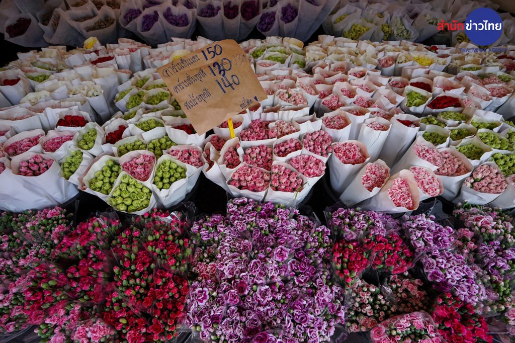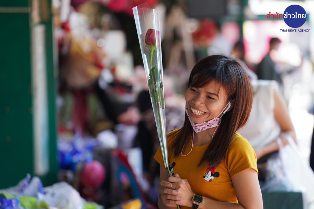 บรรยากาศปากคลองตลาด มีประชาชนเดินทางมาซื้อหาดอกไม้อย่างบางตา ผู้ประกอบการบอกปีนี้เงียบเหงากว่าปีที่แล้ว เนื่องจากมีการแพร่ระบาดจาก โรคโควิด-19 และตรงกับช่วงวันหยุดยาว ทำให้การซื้อขายดอกไม้ในช่วงวันวาเลนไทน์ในปีนี้ไม่คึกคัก จึงลดปริมาณการสั่งดอกไม้ลงจากปีก่อนเพราะกลัวจะขายไม่ได้ แต่ก็ยังหวังว่าในตอนเย็นวันนี้ จะมีประชาชนมาเลือกซื้อหาดอกไม้เพิ่มมากขึ้น ราคาดอกไม้ในปีนี้ส่วนใหญ่ก็จะขายเท่ากับปีที่แล้ว ส่วนดอกกุหลาบ ราคาอยู่ที่ดอกละ 50-100 บาท แล้วแต่สายพันธุ์ บางร้านก็จัดขายเป็นช่อ ราคาตามขนาดของช่อและดอกไม้ที่เลือก