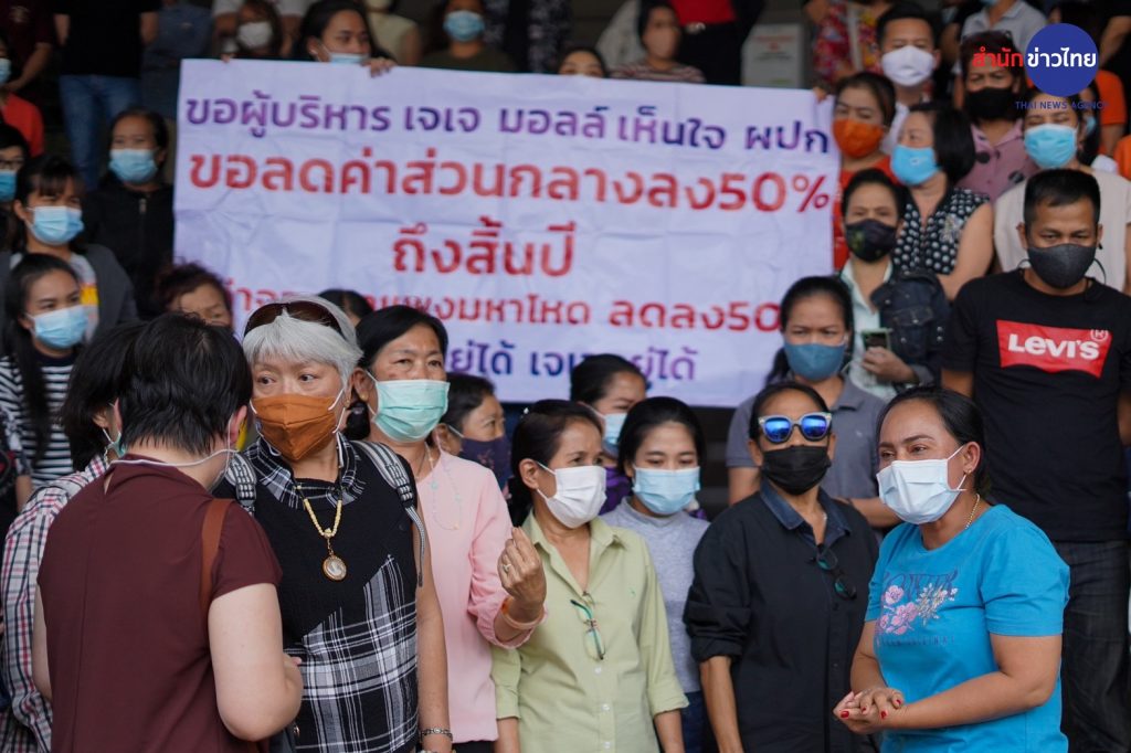 วันนี้ผู้ประกอบการร้านค้า ที่เช่าแผงค้า ในห้าง JJ MALL รวมตัวยื่นหนังสือ ขอความเห็นใจ ลดค่าส่วนกลาง 50% เนื่องจากสถานการณ์ โควิด-19 ตั้งแต่ต้นปี 63 ทำให้ลูกค้าหายไปกว่า 80% ส่งผลให้ผู้เช่า เจอปัญหาขาดทุนสะสม บวกกับการระบาดระลอกใหม่ จากเดิมยอดขายที่หดหาย ตอนนี้กลับกลายแทบเป็นศูนย์ จึงมาขอความเห็นใจจากศูนย์การค้า ขอให้ช่วยลดค่าส่วนกลางลง