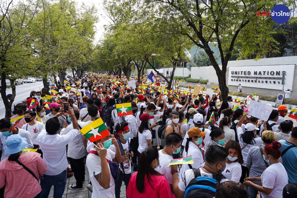 วันนี้ (22 ก.พ.64) กลุ่มชาวเมียนมาที่อยู่ในประเทศไทย นัดหยุดงานชุมนุมหน้าองค์การสหประชาชาติประจำประเทศไทย (UN) เรียกร้องให้ช่วยกดดันรัฐบาลเมียนมายุติการใช้ความรุนแรงกับประชาชนที่ออกมาต่อต้านรัฐประหารในเมียนมา