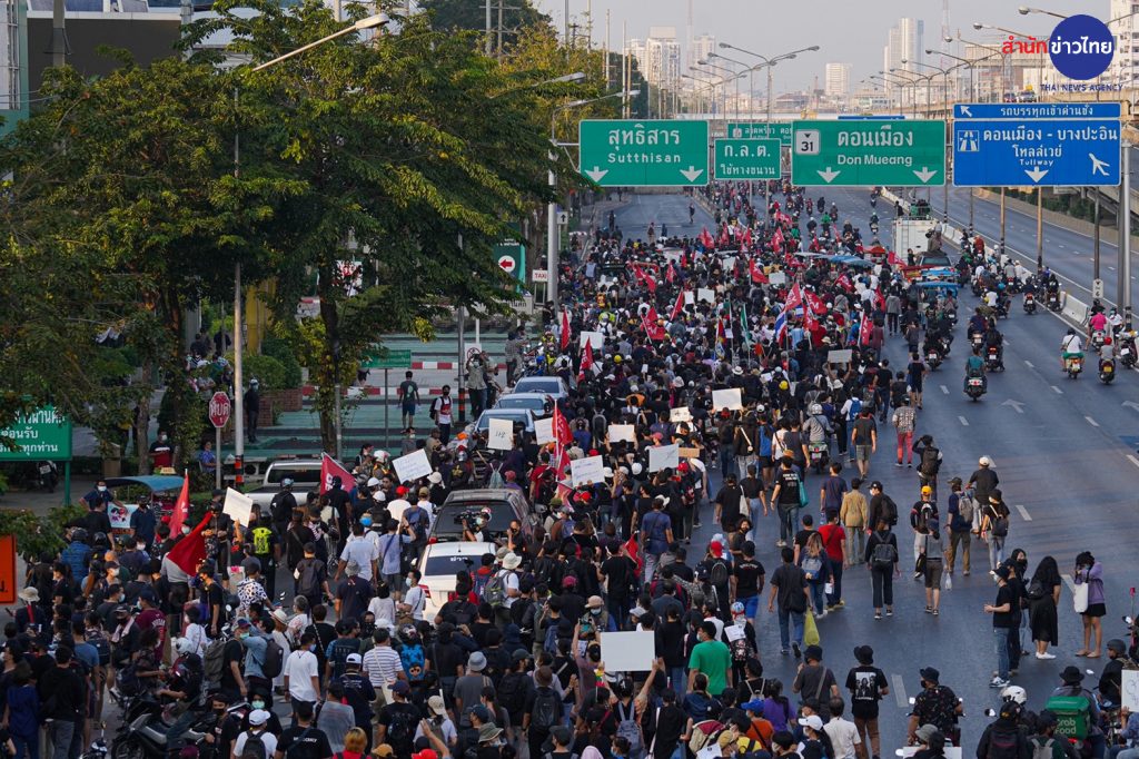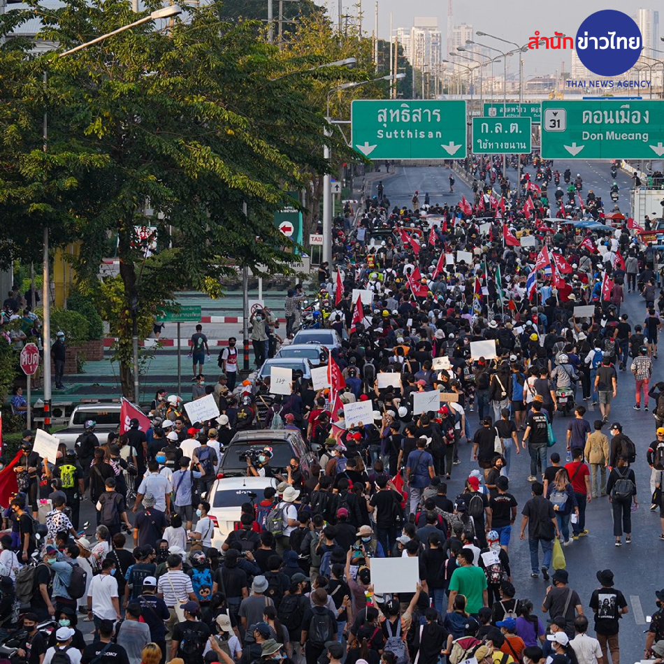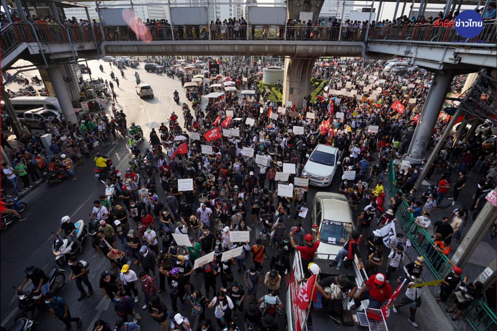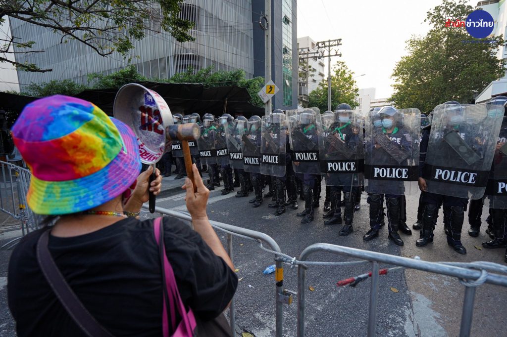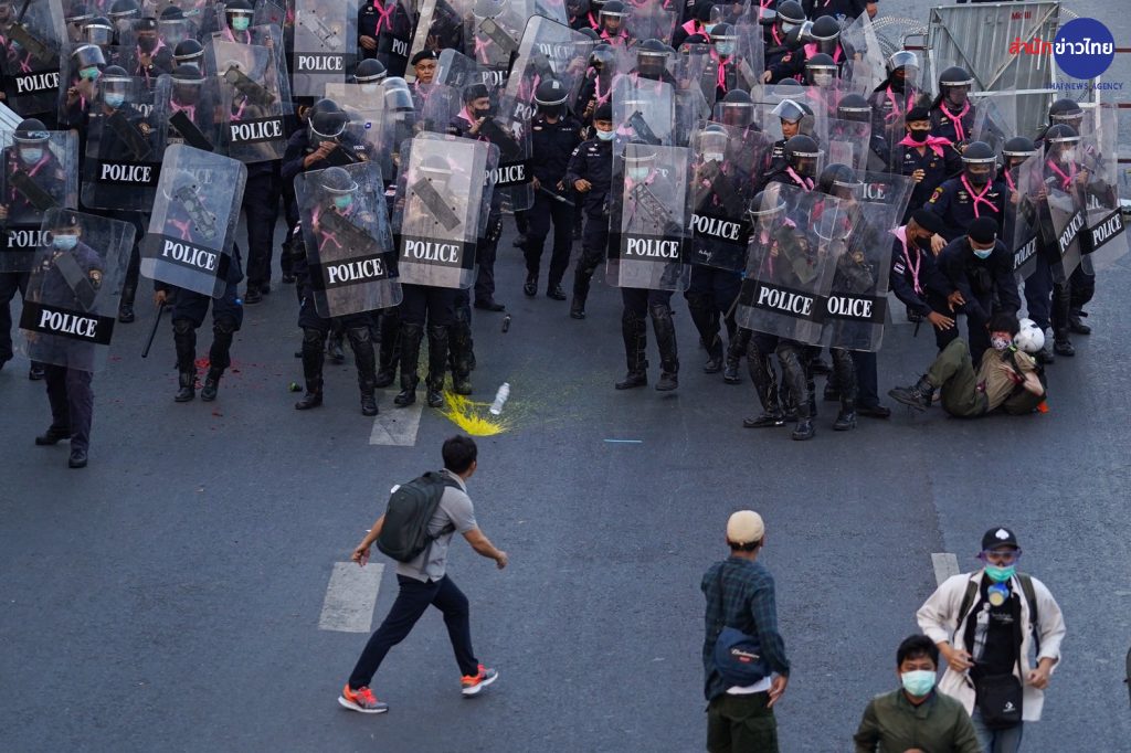 เมื่อเวลา 18.00 น. วันนี้ (28 ก.พ.) กลุ่มผู้ชุมนุมได้เข้ามาถึงบริเวณด้านหน้ากรมทหารราบที่ 1 โดยหัวขบวนลงด่านเก็บเงินค่าผ่านทางโทลล์เวย์ดินแดง ช่วยกันเคลื่อนย้ายตู้คอนเทนเนอร์ออกจากที่เจ้าหน้าที่นำมาวางไว้เป็นแนวกั้นระหว่างผู้ชุมนุมกับตำรวจชุดควบคุมฝูงชน พร้อมรั้วลวดหนามที่เจ้าหน้าที่วางไว้ด้านบนของตู้คอนเทนเนอร์ ขณะที่มวลชนกลุ่มหนึ่งพยายามฝ่าด่านตำรวจชุดควบคุมฝูงชนเข้าไปภายในแนวรั้วชั้นใน ซึ่งติดกับรั้วของกรมทหารราบที่ 1