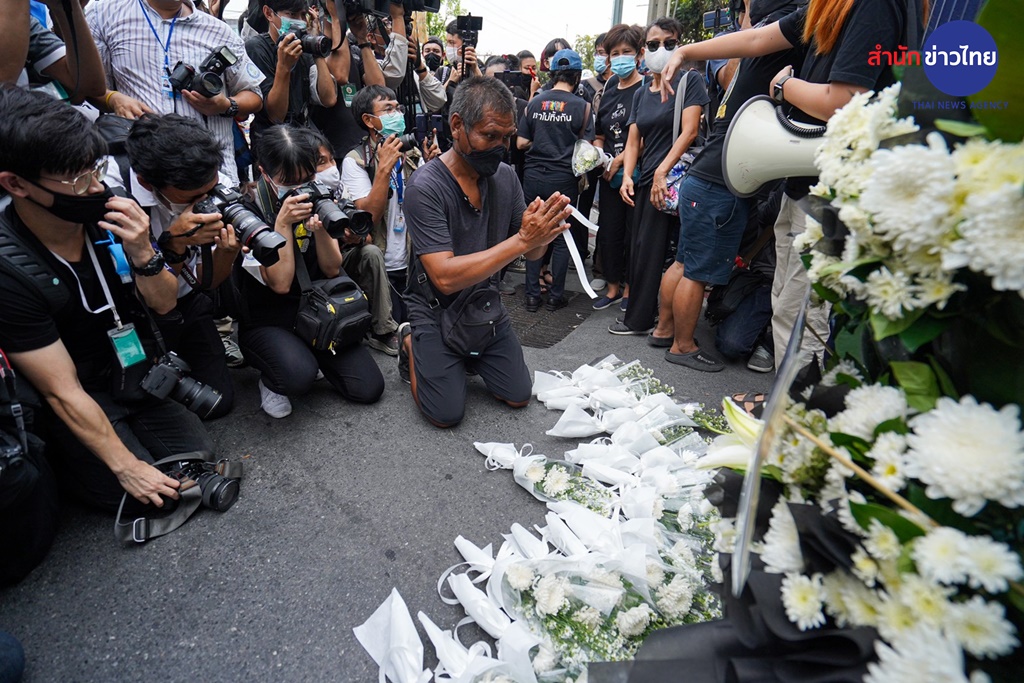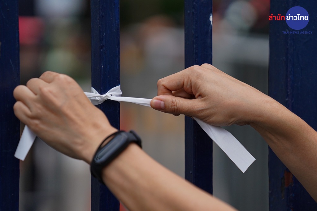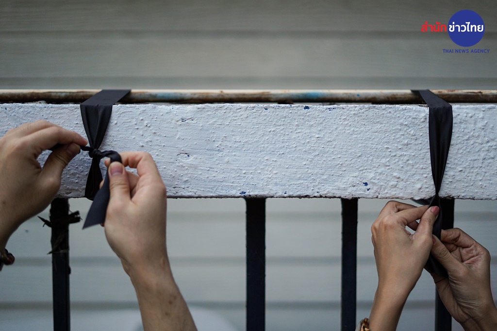 กลุ่มแนวร่วมธรรมศาสตร์ รวมตัววางพวงหรีด ติดริบบิ้น ไว้อาลัย . กลุ่มแนวร่วมธรรมศาสตร์ รวมตัวทำกิจกรรมใส่ชุดดำ วางพวงหรีด…