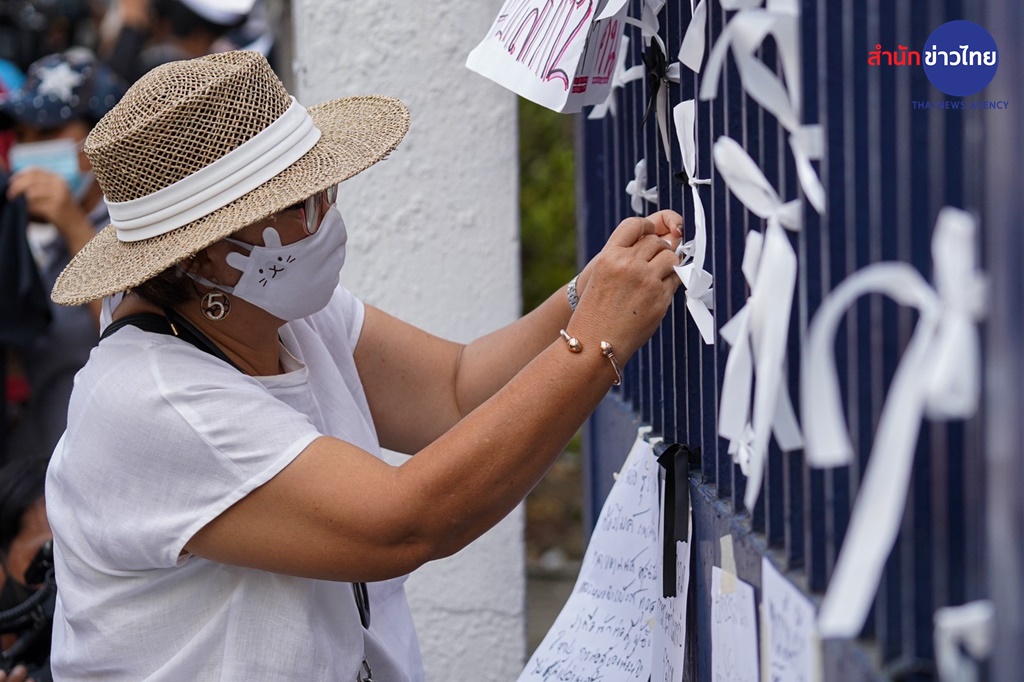 กลุ่มแนวร่วมธรรมศาสตร์ รวมตัวทำกิจกรรมใส่ชุดดำ วางพวงหรีด ติดริบบิ้น ไว้อาลัยความอยุติธรรม โดยทางกลุ่มได้อ่านแถลงการณ์จากรุ้ง หรือปนัสยา สิทธิจิรวัฒนกุล ที่เขียนถึงผู้ชุมนุมก่อนถูกคุมตัว ไปยังเรือนจำใจความในแถลงการณ์ เรียกร้องให้ผู้ชุมนุมเดินหน้าต่อสู้ เรียกร้องรัฐบาลปฏิบัติตามข้อเรียกร้อง 3 ข้อถึงแม้ว่าตนเองจะไม่ได้อยู่ร่วมในการชุมนุมแล้วก็ตาม ขอให้ทุกคนสามัคคีเชื่อว่าผู้ชุมนุมจะชนะ แม้จะใช้เวลาในการต่อสู้ยาวนานก็ตาม และขอให้การชุมนุมเป็นไปอย่างสันติอหิงสา อย่าใช้กำลัง เพราะจะเป็นข้ออ้าง ให้รัฐบาลใช้ความรุนแรงกับผู้ชุมนุมได้
