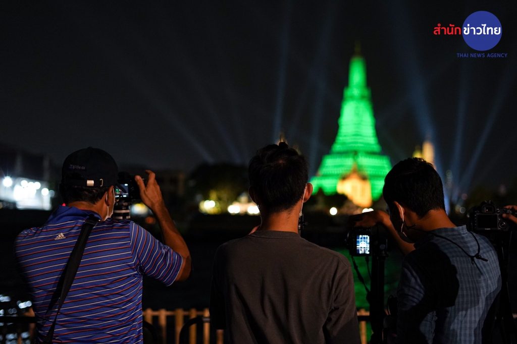 บรรยากาศโดยทั่วไปวันนี้ มีช่างภาพให้ความสนใจบันทึกภาพวัดอรุณราชวราราม เปิดไฟสีเขียว เป็นจำนวนมาก ต่างมาจับจองพื้นที่กันตั้งแต่ช่วงบ่าย เพราะอยากได้ภาพที่ดีที่สุด
