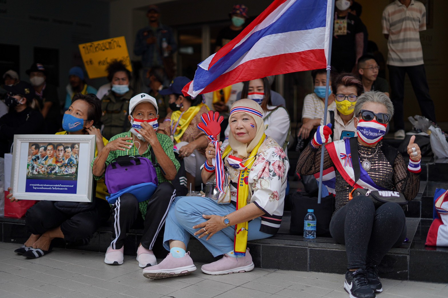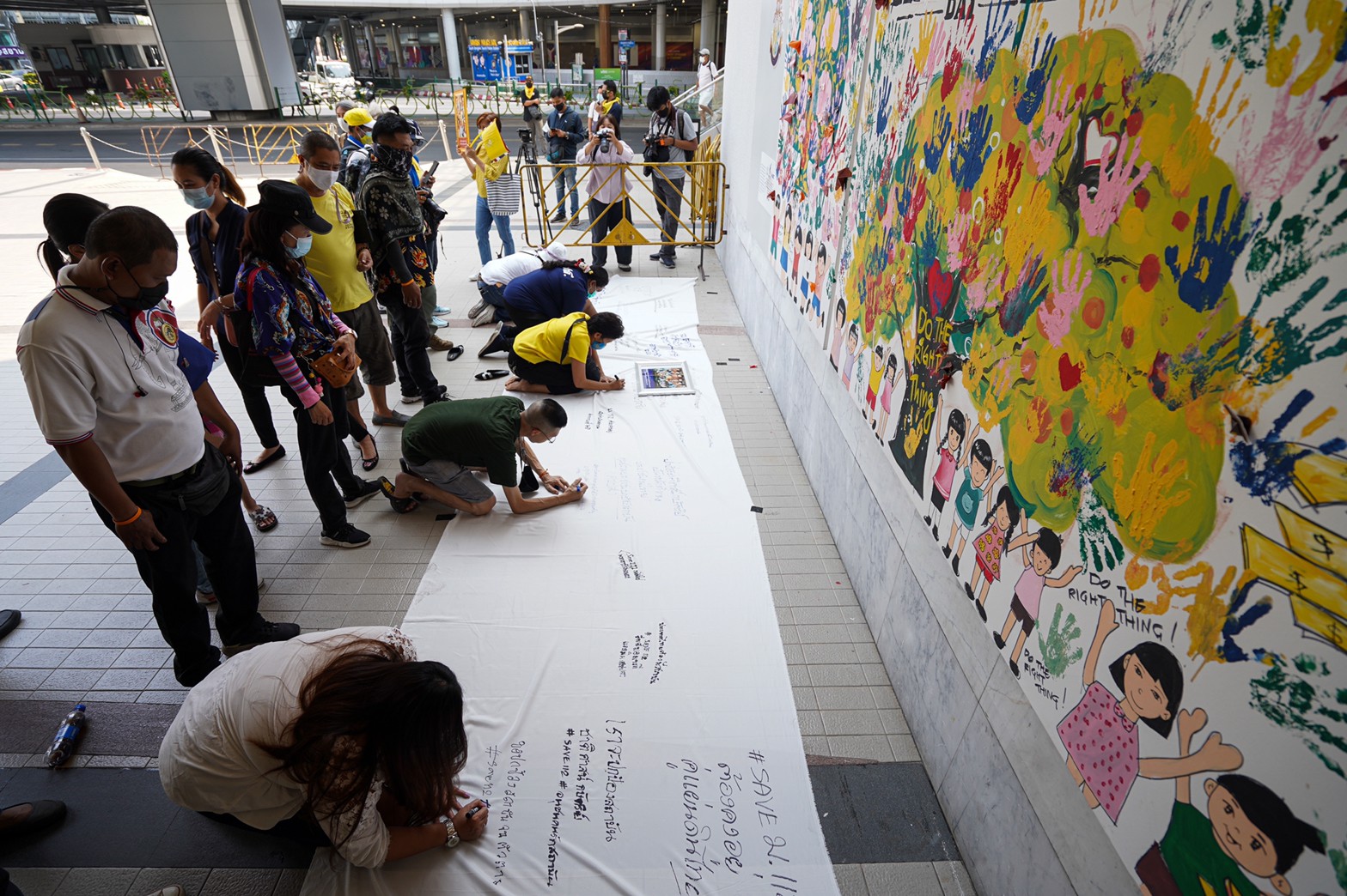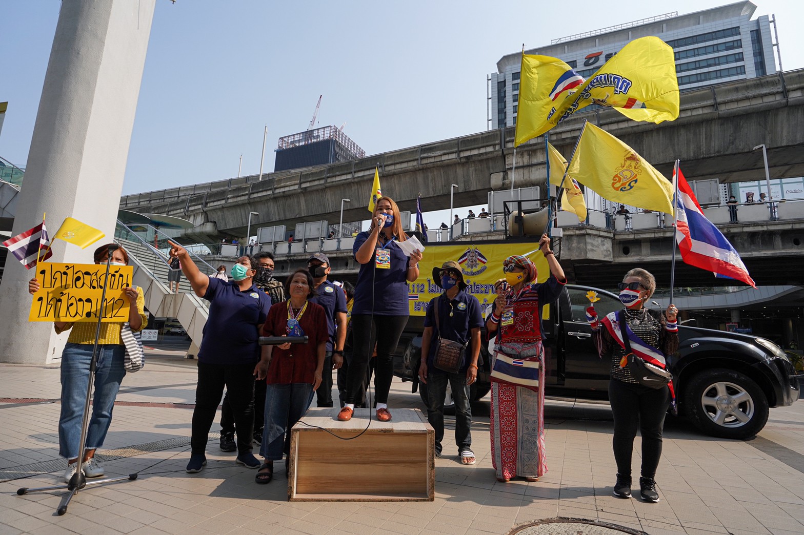 แนวร่วมกลุ่มปกป้องสถาบันฯ รวมพลังแสดงจุดยืนหน้าหอศิลป์ พร้อมล่ารายชื่อพิจารณาคุณสมบัติคณะอาจารย์ มธ.-มข. ที่สนับสนุนการชุมนุม