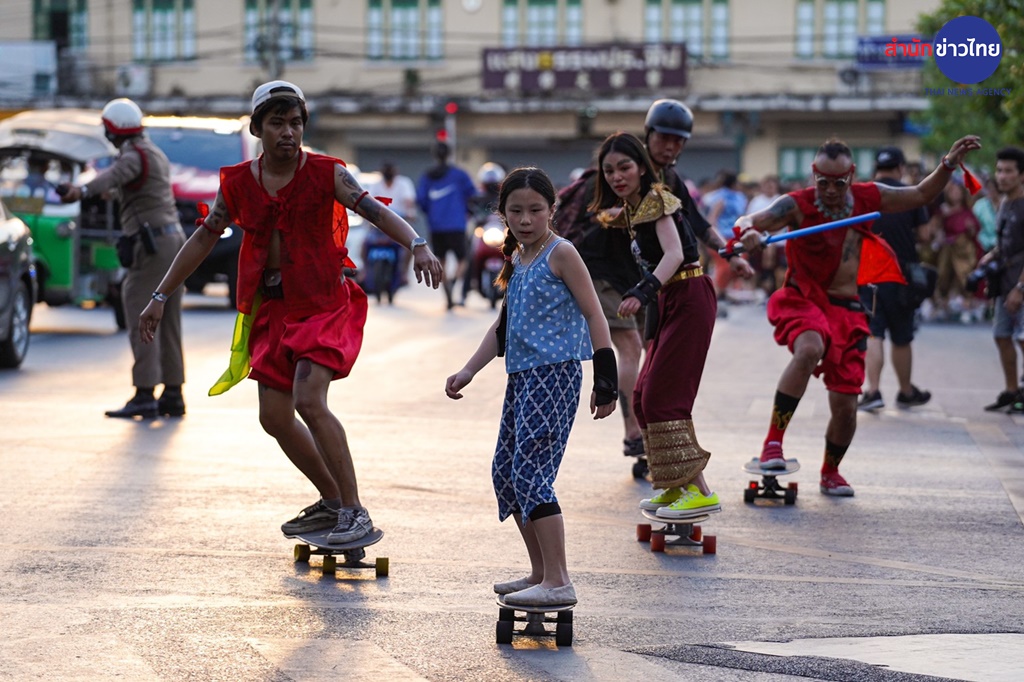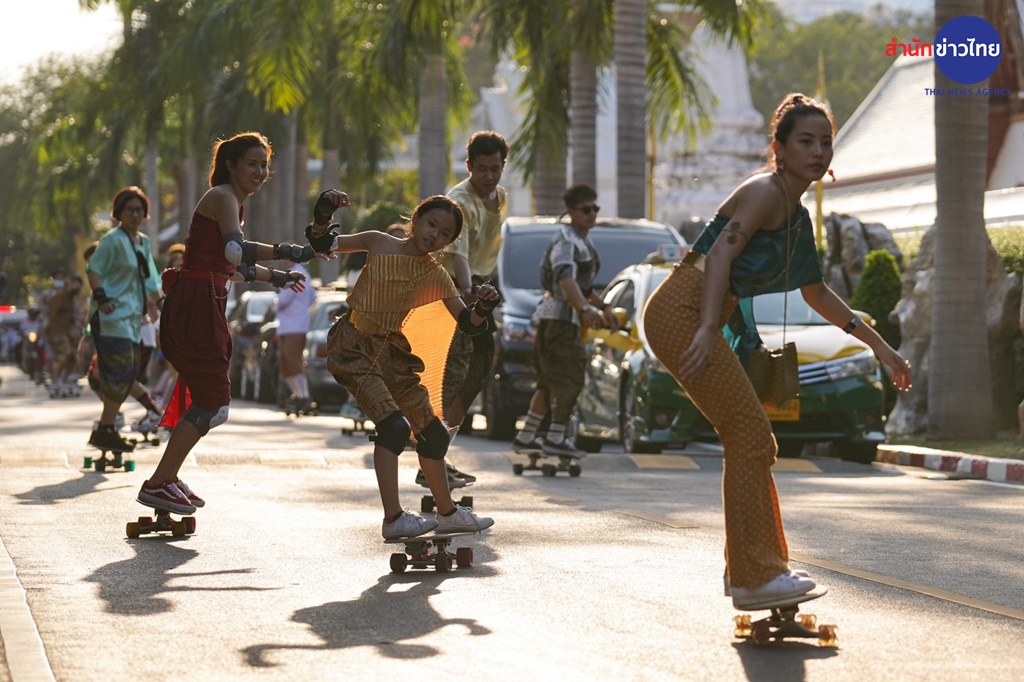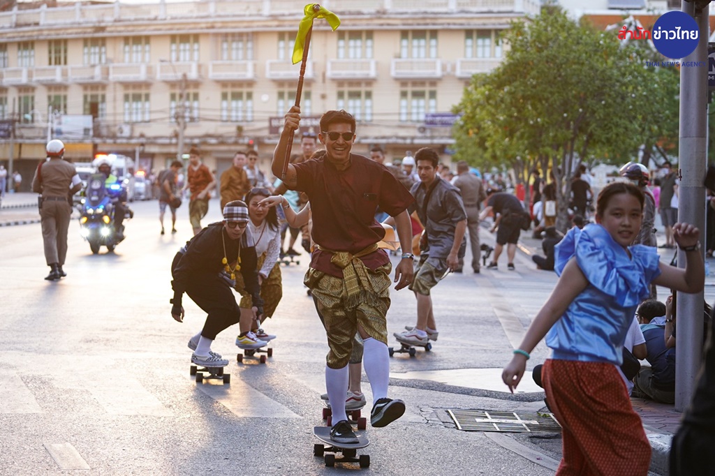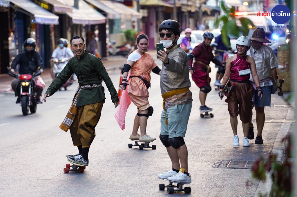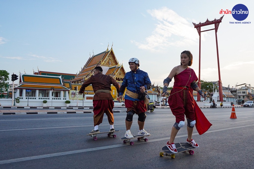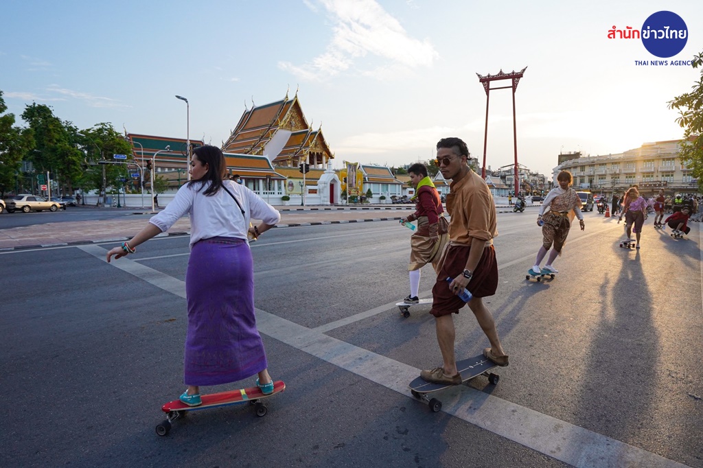 กิจกรรมครั้งนี้ไม่ธรรมดาเลยค่ะ นอกจากจะผสมผสานระหว่างการเล่นเซิร์ฟสเก็ตสุดฮิต เข้ากับชุดไทยประจำชาติร่วมสมัยแล้ว ทุกคนยังได้ร่วมโลดแล่นไปบนเส้นทางแห่งประวัติศาสตร์ชาติไทยรอบเกาะรัตนโกสินทร์กว่า 4 กิโลเมตรด้วย
