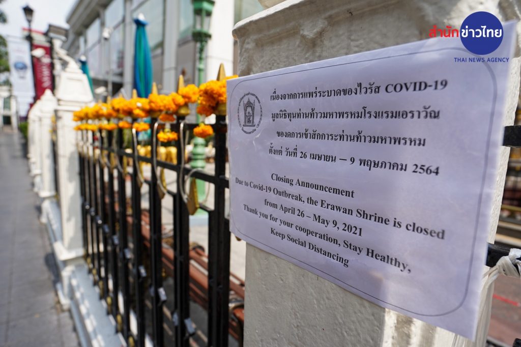 หนึ่งในนั้น คือ สถานที่ศักดิ์สิทธิ์ใจกลางเมือง อย่างศาลท้าวมหาพรหม โรงแรมเอราวัณ ที่ประกาศปิดชั่วคราว งดการเข้าสักการะภายในศาลตั้งแต่วันที่ 26 เมษายน ถึงวันที่ 9 พฤษภาคม