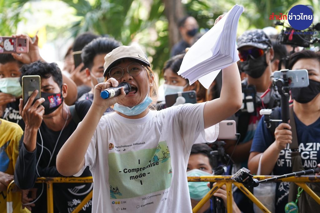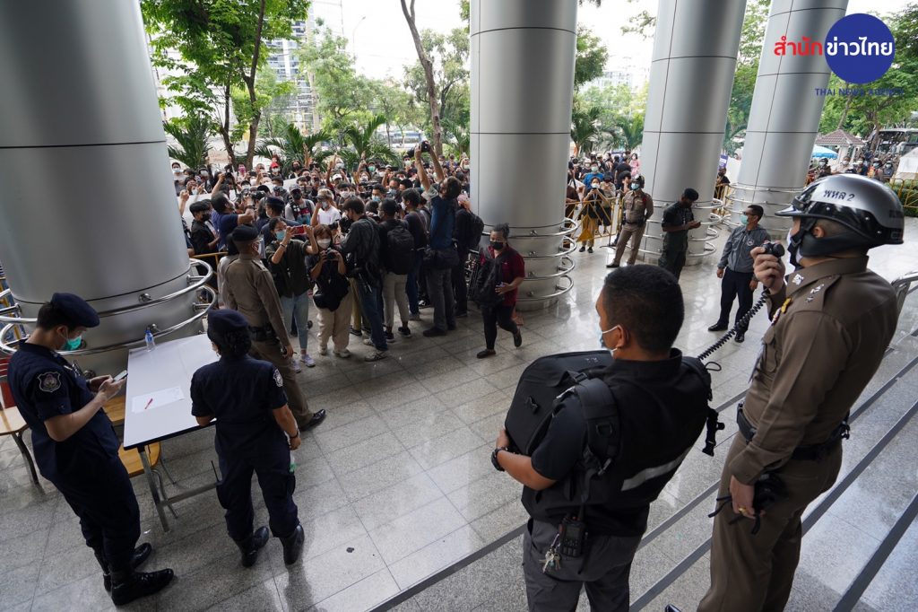ขณะที่ น.ส.เบนจา อะปัญ แกนนำกลุ่มแนวร่วมธรรมศาสตร์และการชุมนุม พร้อมมวลชน เดินทางมาศาลอาญา รัชดาฯ เพื่อยื่นรายชื่อตามแคมเปญล่ารายชื่อยุติ “ราชอยุติธรรม” 11,035 รายชื่อ ต่ออธิบดีผู้พิพากษาศาลอาญา เพื่อทวงสิทธิประกันตัวแกนนำและแนวร่วมคณะราษฎร ซึ่งถูกฟ้องร้องในคดีอาญา มาตรา 112 โดย น.ส.เบญจา เรียกร้องให้นายชนาธิป เหมือนพะวงศ์ รองอธิบดีผู้พิพากษาศาลอาญา เดินทางมารับมอบหนังสือกฎหมายและรายชื่อทั้งหมดด้วยตัวเอง