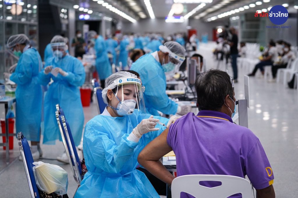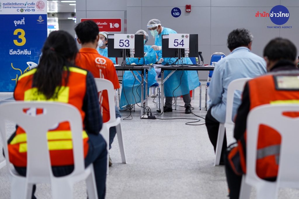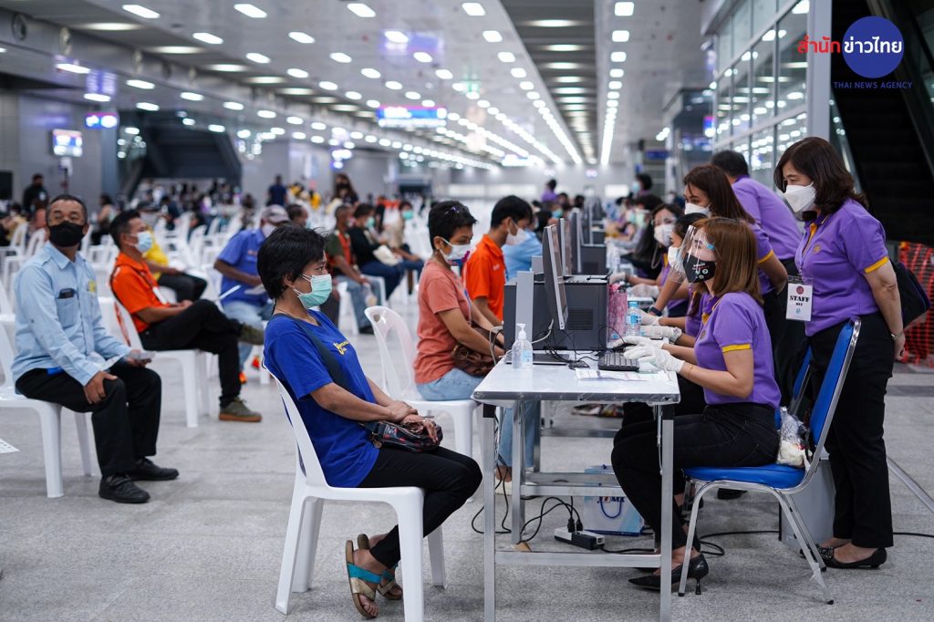 บรรยากาศสถานีกลางบางซื่อ ซึ่งถูกใช้พื้นที่เป็นศูนย์ฉีดวัคซีนโควิด-19 ให้แก่บุคลากรด่านหน้า ผู้ให้บริการรถโดยสารสาธารณะในระบบขนส่งต่างๆ โดยมีผู้ให้บริการรถแท็กซี่และจักรยานยนต์รับจ้าง รวมถึงหน่วยงานให้บริการต่างๆ มารอรับการฉีดวัคซีนตั้งแต่ก่อนเวลา 07.00 น. โดยนอกจากผู้ประกอบการรถโดยสารสาธารณะทั่วไปแล้ว ในวันนี้ บริษัท ทางด่วนและรถไฟฟ้า กรุงเทพ จำกัด (มหาชน) หรือ BEM ได้ส่งบุคลากรด่านหน้า เจ้าหน้าที่ประจำสถานีรถไฟฟ้าต่างๆ ประมาณ 200 คนเข้ารับการฉีดวัคซีนด้วย ทั้งนี้ในตลอดวันนี้ คาดว่าจะมีบุคลากรด้านหน้าได้รับการฉีดวัคซีนมากว่า 4,000 ราย ซึ่งเป็นไปตามยอดผู้ลงทะเบียนเข้ามาขอรับการฉีด โดยยอดผู้เข้ารับการฉีดวัคซีนจะเพิ่มเป็น 6,000 คนในวันพรุ่งนี้ และจะเพิ่มขึ้นเป็นมากกว่า 7,000 คน ในพุธวันที่ 26 พ.ค. ส่วนในวันพฤหัสบดี ที่ 27 พ.ค. ก็จะเพิ่มเป็น 8,000 คน หลังจากนั้นจะเพิ่มเป็นวันละ 10,000 คน