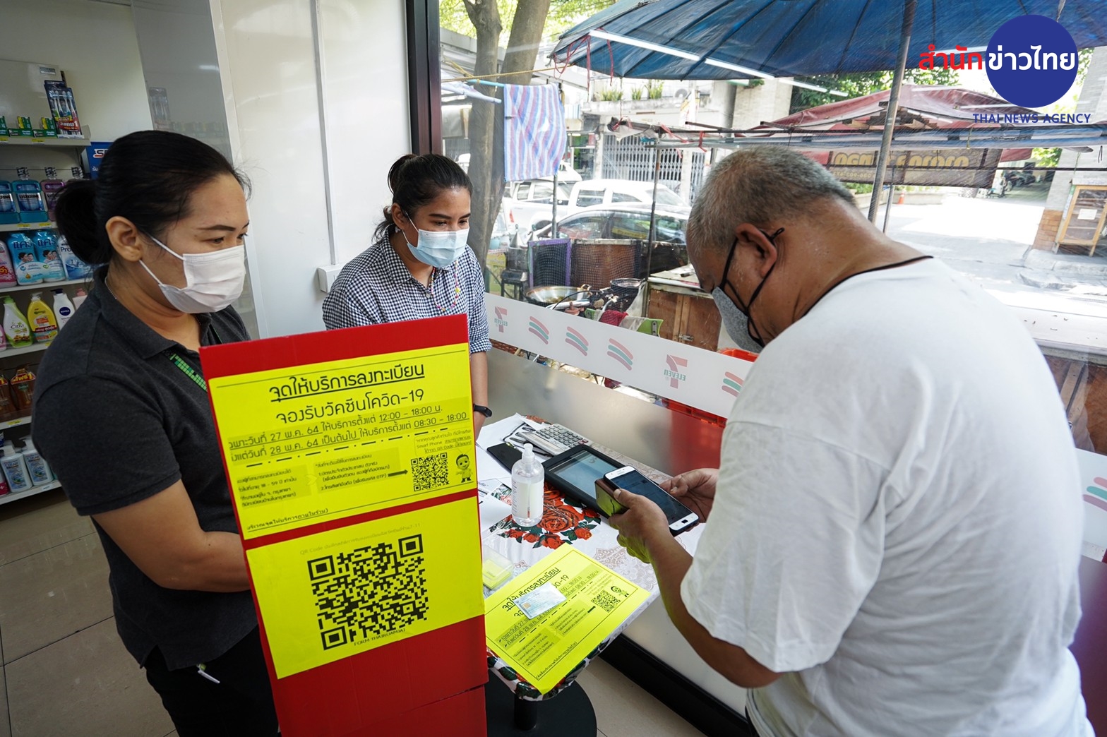 บรรยากาศที่ร้านสะดวกซื้อชั้นนำ ซึ่งเปิดรับลงทะเบียนจองวัคซีนโควิด-19 หลังกรุงเทพมหานครขยายช่องทางกระจายวัคซีน เพื่อเป็นทางเลือกใหม่ให้กับคนไทย ในโครงการ “ไทยร่วมใจ กรุงเทพฯ ปลอดภัย” เพื่ออำนวยความสะดวกให้กับประชาชนในพื้นที่กรุงเทพฯ ที่มีอายุ 18-59 ปี และไม่อยู่ใน 7 กลุ่มโรคเสี่ยงได้รับวัคซีนโควิด-19 เพื่อให้ได้รับวัคซีนอย่างรวดเร็วและทั่วถึง โดยสามารถลงทะเบียนรับวัคซีนโควิด-19 ในจุดบริการวัคซีนนอกโรงพยาบาล 25 จุด ผ่าน 3 ช่องทาง คือ www.ไทยร่วมใจ.com, แอปพลิเคชันเป๋าตัง และร้านสะดวกซื้อ เช่น เซเว่น อีเลฟเว่น, มินิบิ๊กซี, ท็อปส์, แฟมิลี่มาร์ท ทั่ว กทม. เป็นต้น