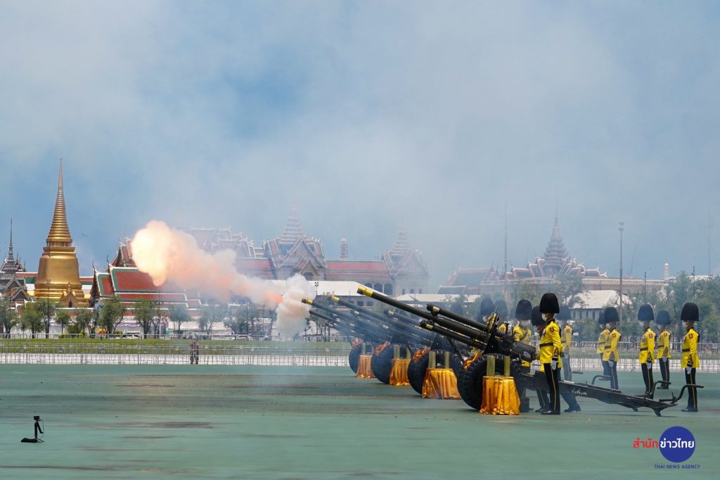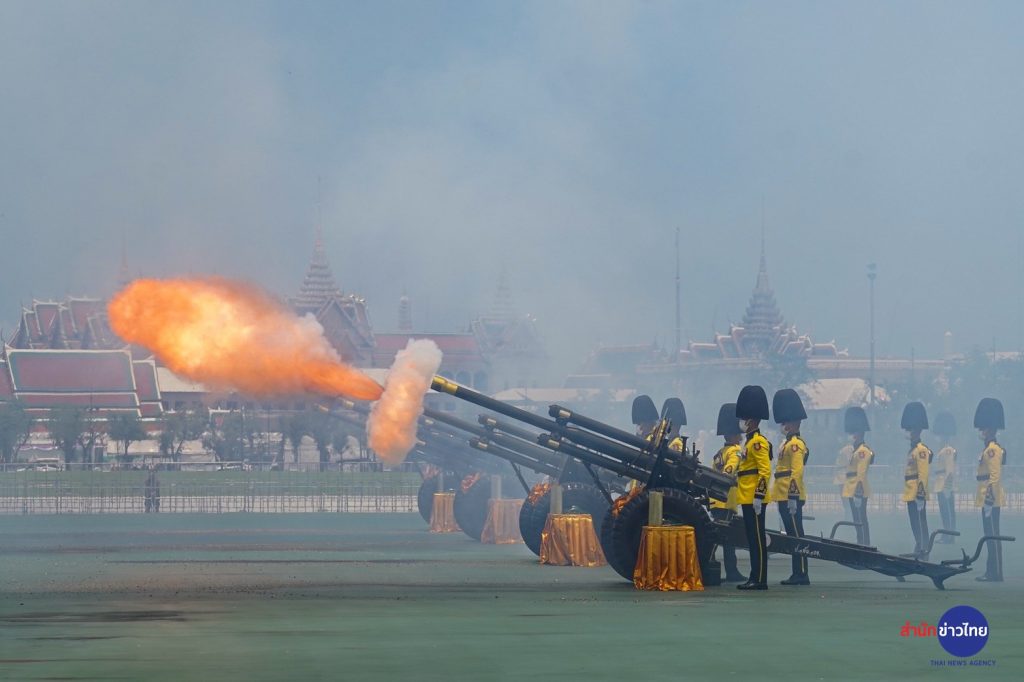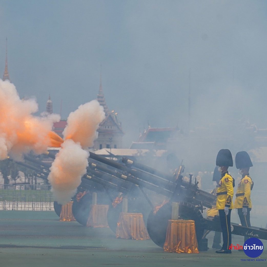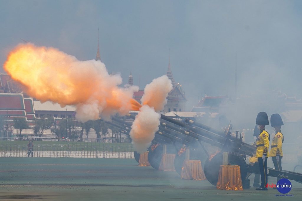 กองพันทหารปืนใหญ่ที่ 1 รักษาพระองค์ (ป.1 พัน.1 รอ.) ยิงสลุตหลวง 21 นัด ที่มณฑลพิธีท้องสนามหลวง เฉลิมพระเกียรติ เนื่องในโอกาสวันเฉลิมพระชนมพรรษาสมเด็จพระนางเจ้าสุทิดา พัชรสุธาพิมลลักษณ พระบรมราชินี ประจำปีพุทธศักราช 2564 ทั้งนี้ได้ยิงพร้อมกันทั้ง 3 เหล่าทัพ ในเวลา 12.00 น. เมื่อวันที่ 3 มิ.ย.64