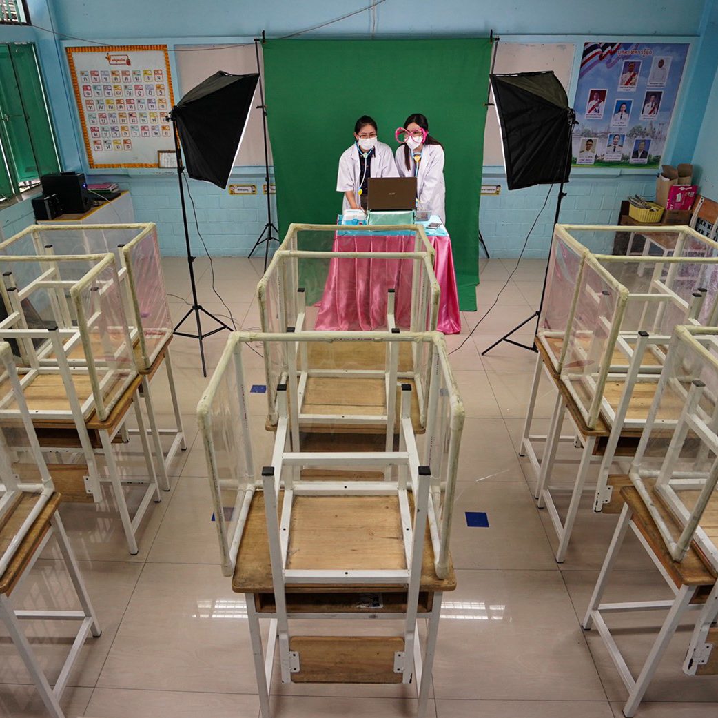 การเรียนการสอนแบบ Online ของโรงเรียนสุเหร่าใหม่ ซ.อ่อนนุช 39 เขตสวนหลวง ในช่วงสถานการณ์การแพร่ระบาดของโรคโควิด-19 โดยครูผู้สอนในแต่ละวิชาต่างแต่งชุดแฟนซี เพื่อเพิ่มสีสันในการเรียนการสอนหวังจะให้ความรู้และสร้างความสนุกสนานในการเรียนรูปแบบ Online ซึ่งนางสาววรินทร กนกวงศ์อนันต์ ผู้อำนวยการสถานศึกษา บอกว่า การที่ครูแต่งชุดแฟนซีมาสอน ทำให้การเรียนดูสนุก และเพิ่มความน่าสนใจในบทเรียน ทั้งนี้ยังได้ผลตอบรับที่ดีทั้งจากผู้ปกครอง และนักเรียนอีกด้วย
