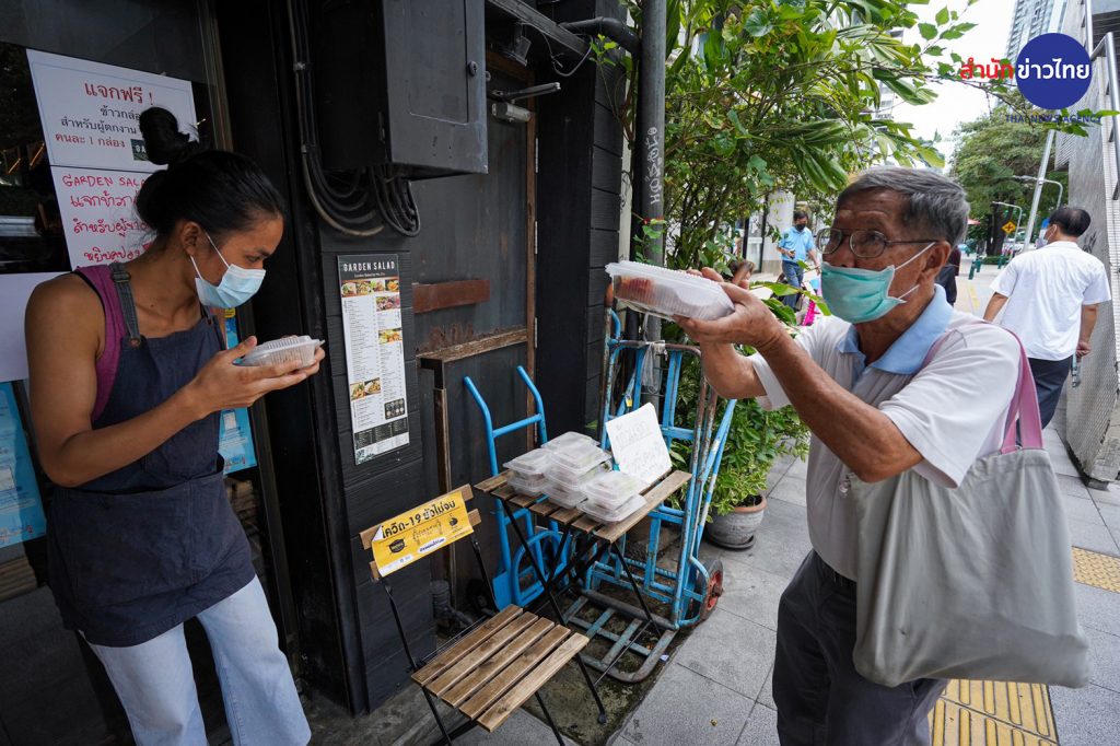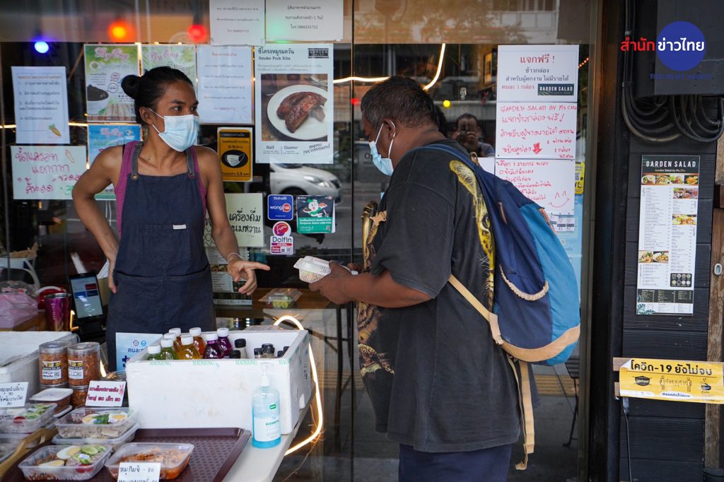 ในแต่ละวัน “ไหม อรณัชชา” เจ้าของร้านอาหารย่านพญาไท จะนำอาหารมาวางไว้หน้าร้าน วันละ 20-30 กล่อง เพื่อแจกให้กับคนไร้บ้านและคนตกงาน ให้ได้อิ่มท้อง หลังการแพร่ระบาดของโรคโควิด-19 รอบที่สาม ยังคงระบาดอย่างต่อเนื่อง จนทำให้มีผู้ที่ได้รับผลกระทบในหลากหลายอาชีพ