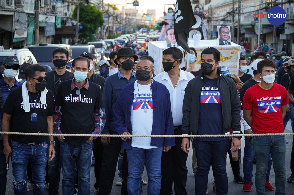 โดยผู้ชุมนุมได้ร่วมกันบีบแตรรถยนต์ไปตลอดทาง ก่อนพบกับแนวกำลังตำรวจบริเวณเชิงสะพานเทวกรรมรังรักษ์ ก่อนมีการเจรจาขอเปิดทางให้ผู้ชุมนุมได้เดินมุ่งหน้าไปยังสามแยกนางเลิ้ง และเชิงสะพานชมัยมยุรเชฐได้อย่างเรียบร้อยปราศจากความรุนแรง จากนั้นกลุ่มไทยไม่ทน นำโดยนายจตุพร พรหมพันธุ์ ได้เดินเท้านำมวลชนเข้าสู่พื้นที่การชุมนุม เพื่อขึ้นปราศรัยกับผุ้ชุมนุมบริเวณดังกล่าว