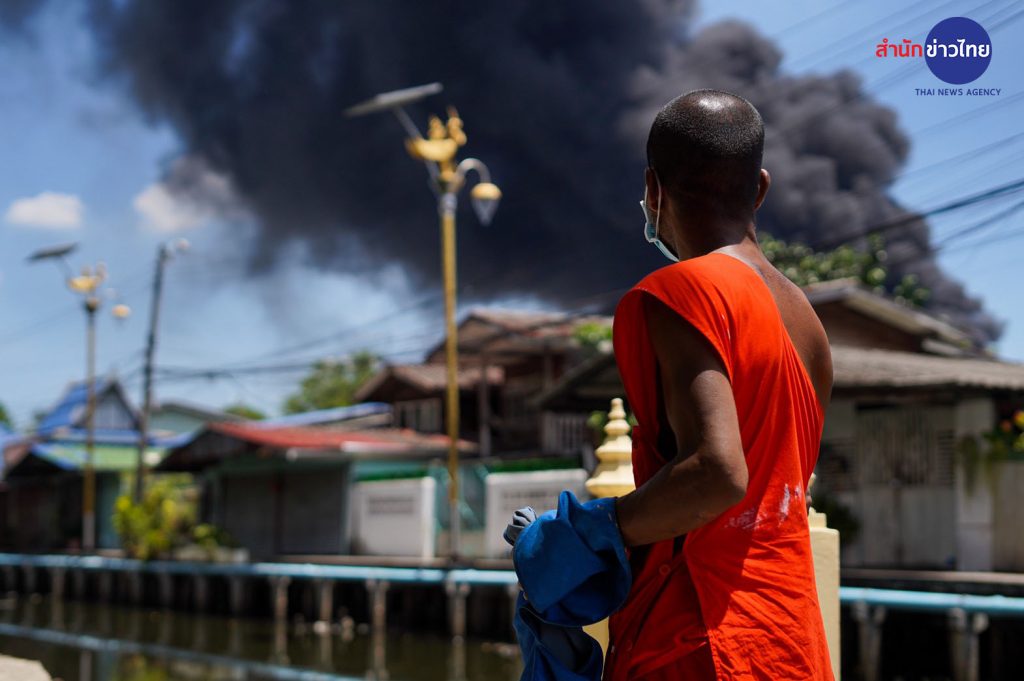นายวรภพ แสงเดือน หัวหน้าครูฝึกอาสมัคร กทม. เจ้าหน้าที่กู้ภัย เผยว่า ขณะนี้กำลังจะถอนกำลังเจ้าหน้าที่ออกจากพื้นที่ให้เร็วที่สุด สถานการณ์ขณะนี้ควบคุมไม่อยู่หวั่นจะเกิดระเบิดซ้ำ ประสานรถโฟมจากกรุงเทพมหานครเข้ามาควบคุมสถานการณ์ และต้องกลับมาวางแผนใหม่อีกครั้ง ตัวเลขล่าสุดมีนักผจญเพลิงได้รับบาดเจ็บกว่า 11 ราย บ้านเรือนประชาชนได้รับความเสียหาย 70 หลังคาเรือน มีรายงานว่ามีผู้เสียชีวิต 1 ราย เป็นเจ้าหน้าที่ดับเพลิง