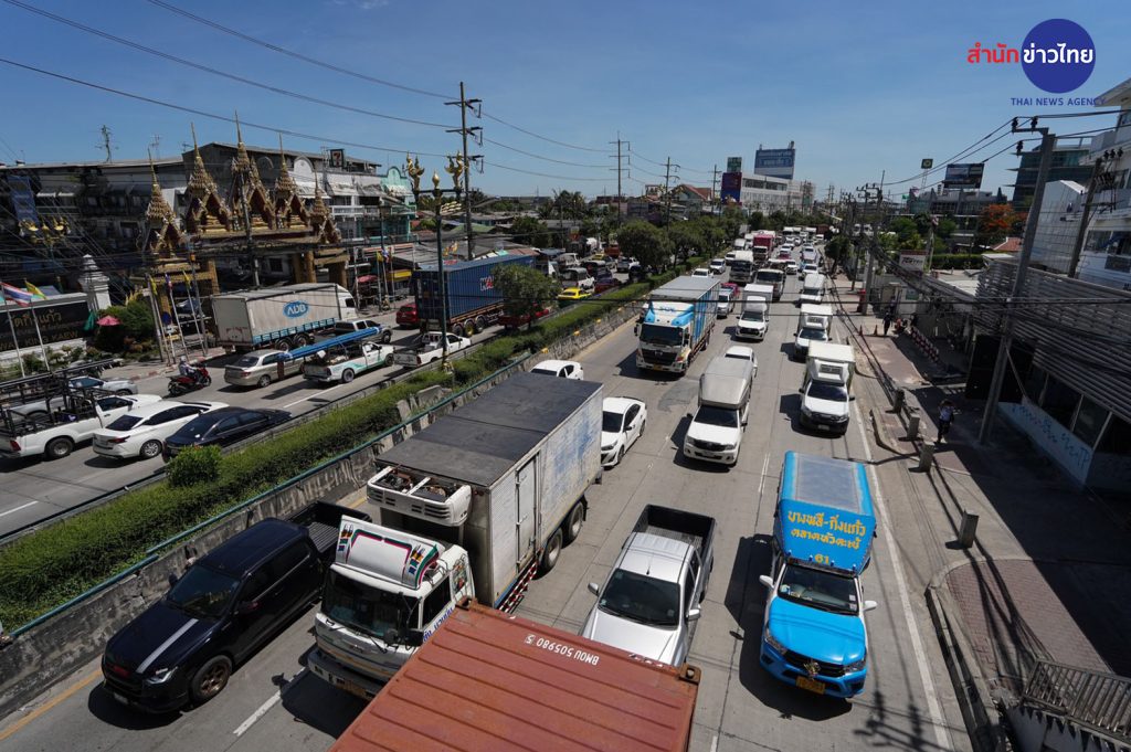 ถนนกิ่งแก้วรถติดยาวเหยียดทั้งขาเข้าและขาออก ซึ่งยังคงมีรถกู้ภัยและ รถเจ้าหน้าที่ และรถพยาบาล ทยอยเข้ามาสมทบเป็นระยะ