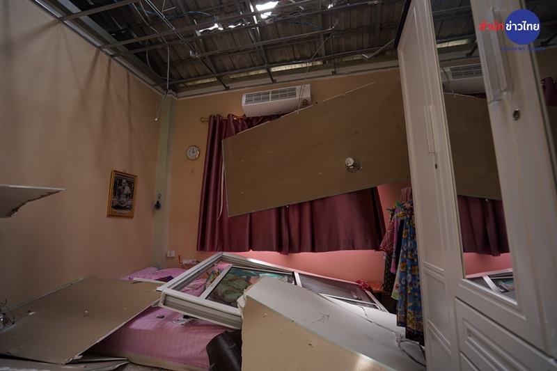 บ้านเรือนประชาชนโดยรอบได้รับความเสียหาย จากเหตุโรงงานโฟมระเบิดไฟลุกท่วมในซอยกิ่งแก้ว