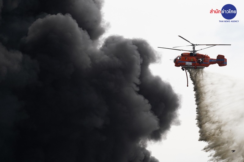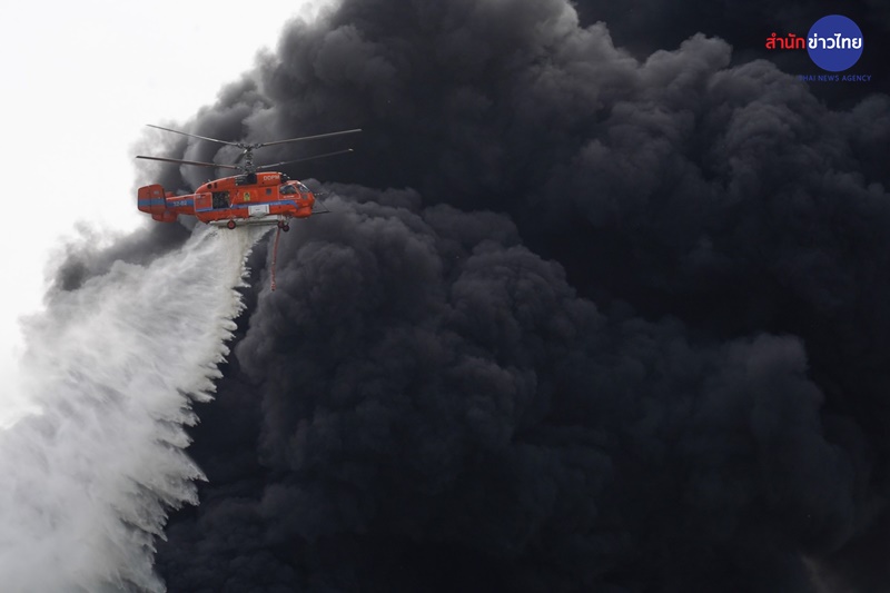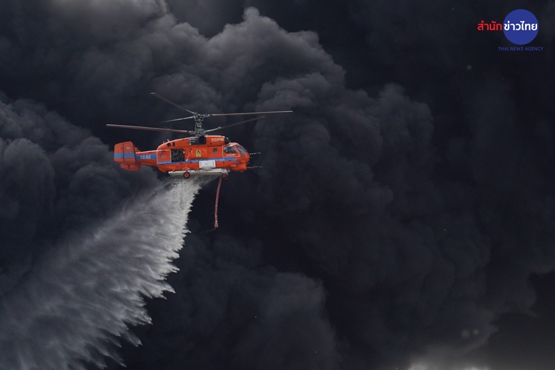ช่วงเวลาประมาณ 15.21 น. กรมป้องกันและบรรเทาสาธารณภัย ส่งเฮลิคอปเตอร์ดับเพลิง KA-32 ร่วมสนับสนุนโปรยโฟมดับไฟบนโรงงานหมิงตี้ เคมิคอล บริเวณซอยกิ่งแก้ว 21 ซึ่งเกิดเพลิงไหม้ใหญ่ตั้งแต่ช่วงเช้ามืดที่ผ่านมา โดยก่อนจะมีการบินมาโปรยโฟมได้มีการประสานให้เจ้าหน้าที่ที่กำลังควบคุมเพลิงอยู่บริเวณโรงงานให้ออกมานอกพื้นที่ จากนั้นเฮลิคอปเตอร์จึงบินมาโปรยโฟมเหนือบริเวณจุดที่เกิดไฟไหม้เป็นจำนวน 10 เที่ยว