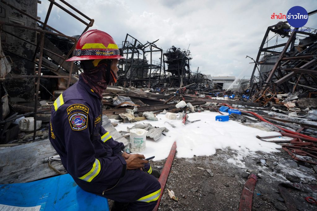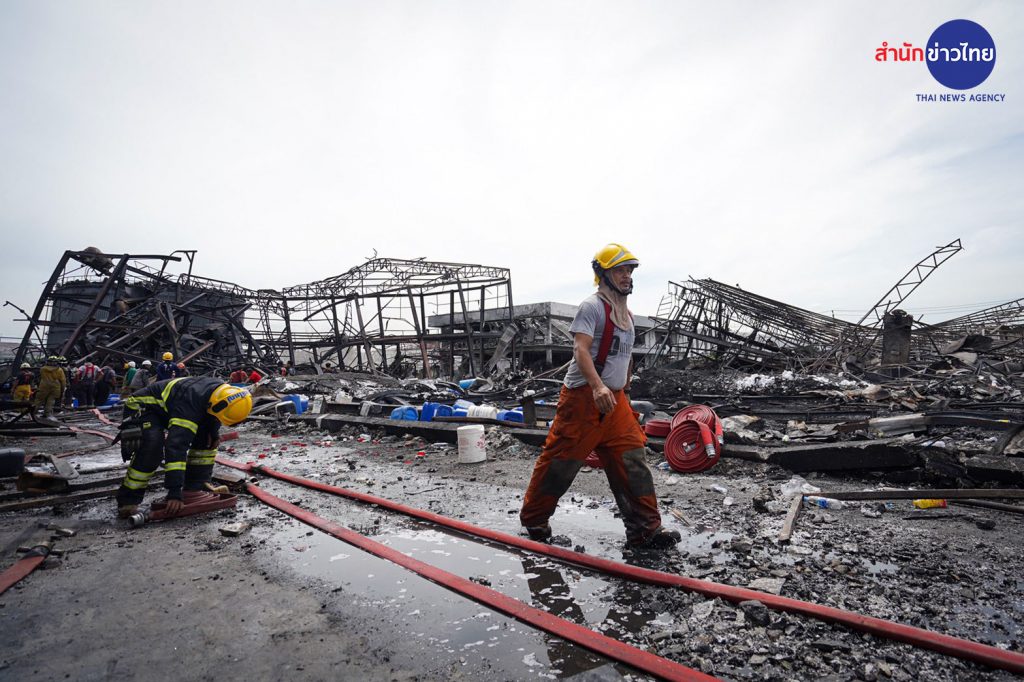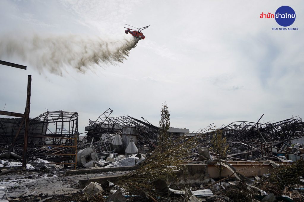 เฮลิคอปเตอร์บินขึ้น ปฏิบัติการใช้โฟมและสารเคมีในการดับไฟ อยู่เป็นระยะๆ และยังต้องฉีดน้ำเพื่อลดอุณหภูมิ แม้จะปิดวาล์วถังสารเคมีได้แล้วแต่ก็ยังขอความร่วมมือให้ประชาชน ที่บ้านในรัศมีใกล้เคียงกับโรงงาน อยู่ที่ศูนย์อพยพเพื่อความปลอดภัยก่อน จนกว่าจะมีการประกาศแจ้งให้กลับเข้ามาได้