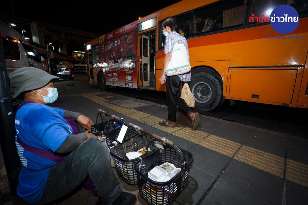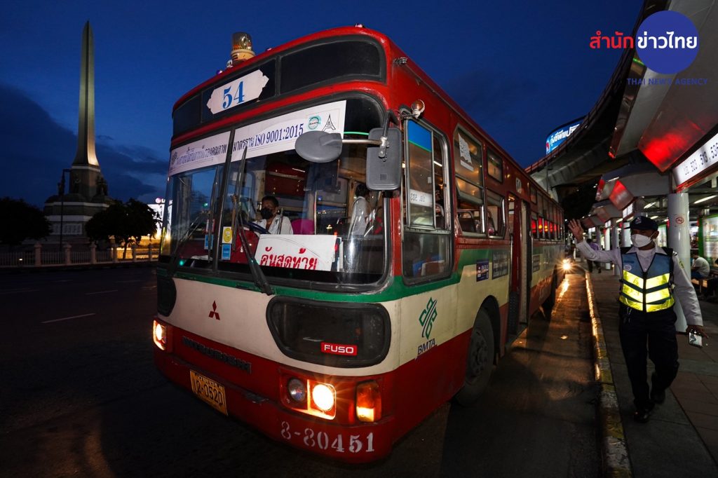 ขณะที่ ขสมก.ปรับเวลาให้บริการเป็น 05.30-20.00 น. โดยมีเจ้าหน้าที่คอยดูแล จัดจำนวนคน เพื่อลดความแออัดบนรถประจำทาง และเมื่อเริ่มเข้าสู่ช่วงเวลา 21.00 น. ตามมาตรการเคอร์ฟิว ที่กำหนดห้ามออกนอกเคหสถาน ตั้งแต่ 21.00-04.00 น. บนถนนที่เคยมีรถหนาแน่น ก็ค่อยๆ โล่งขึ้นจนเหลือแต่ถนนที่ว่างเปล่า