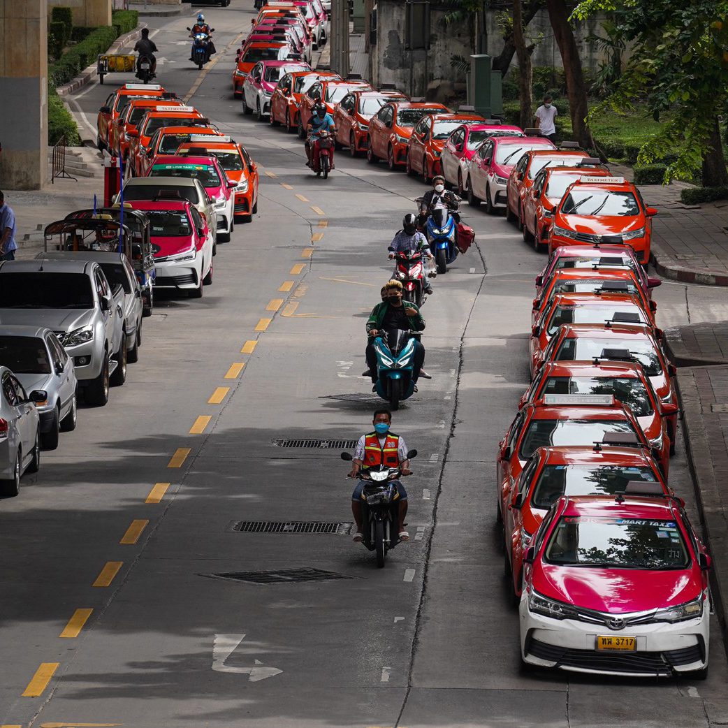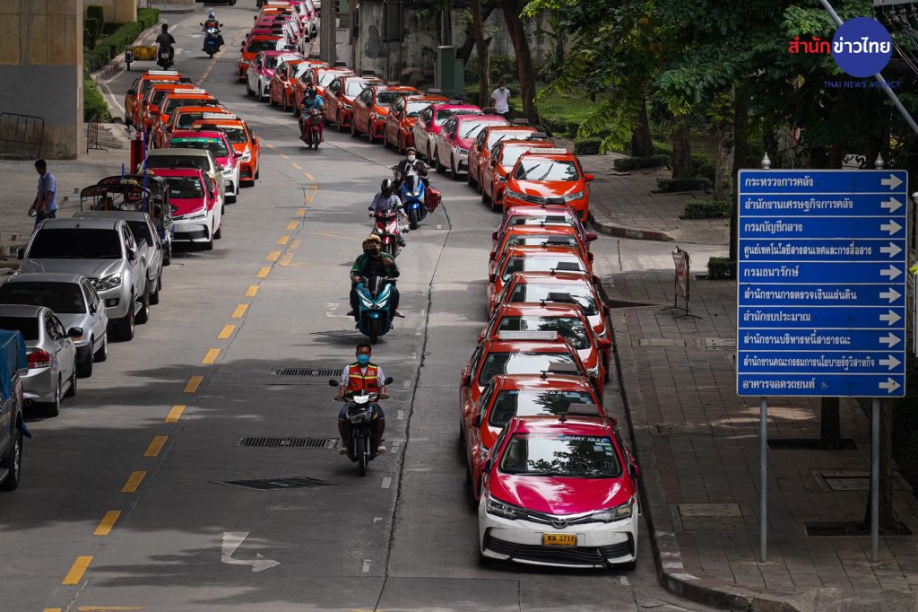 ที่บริเวณโดยรอบกระทรวงการคลัง มีกลุ่มแท็กซี่จาก สมาคมการค้าเครือข่ายแท็กซี่ไทย ได้นำรถแท็กซี่กว่า 100 คันมาจอดเรียงรายเพื่อแสดงออกเชิงสัญลักษณ์ ว่าได้รับผลกระทบจากโควิด -19