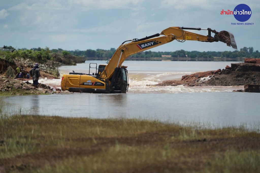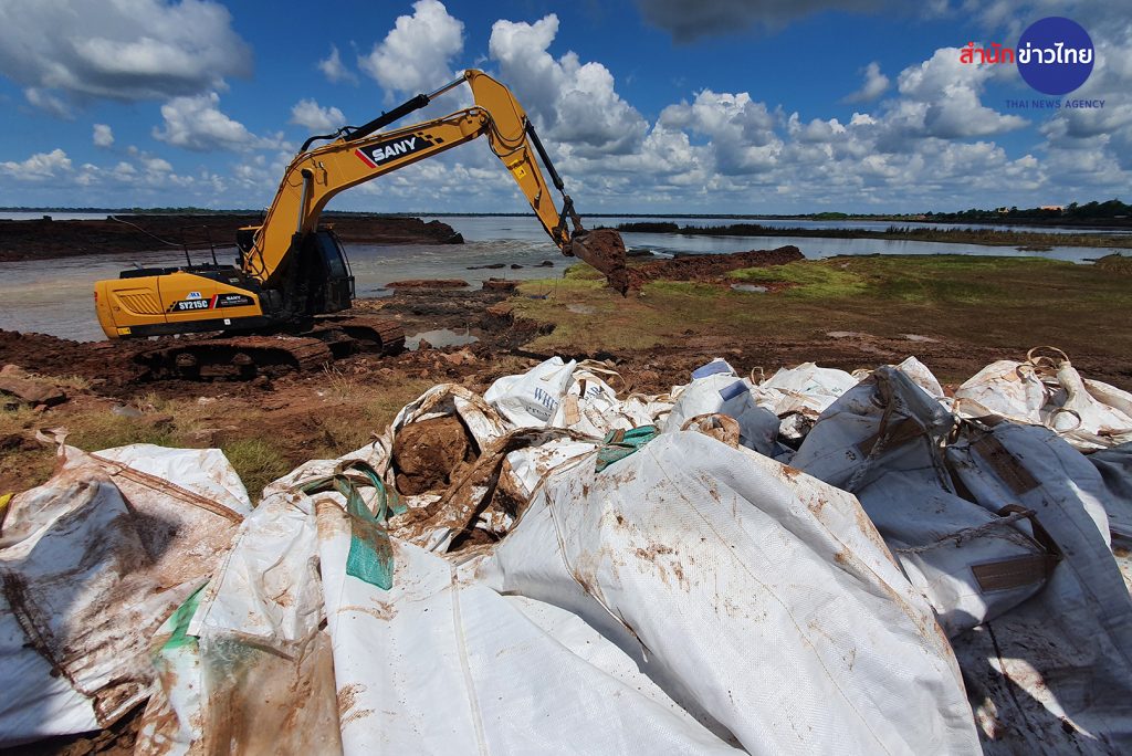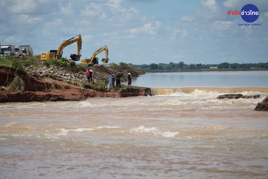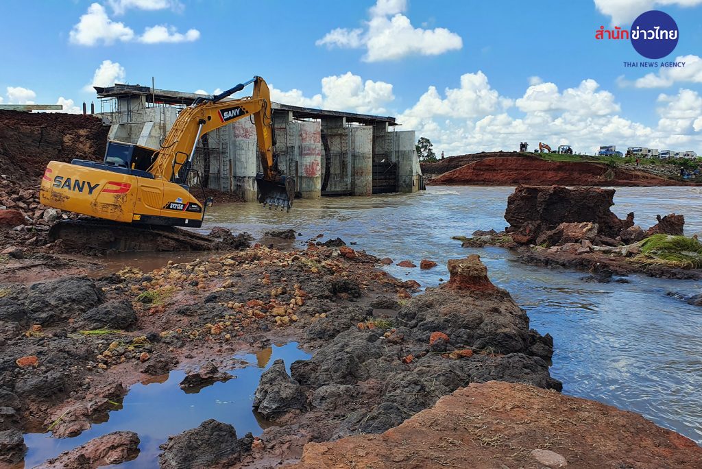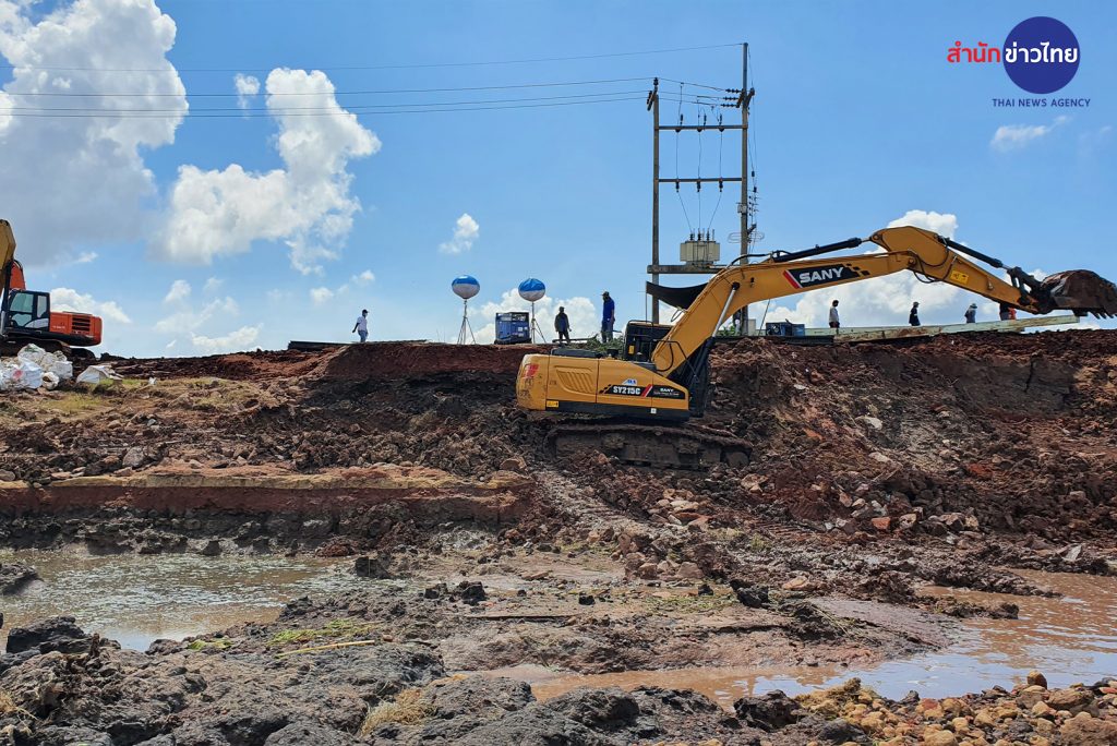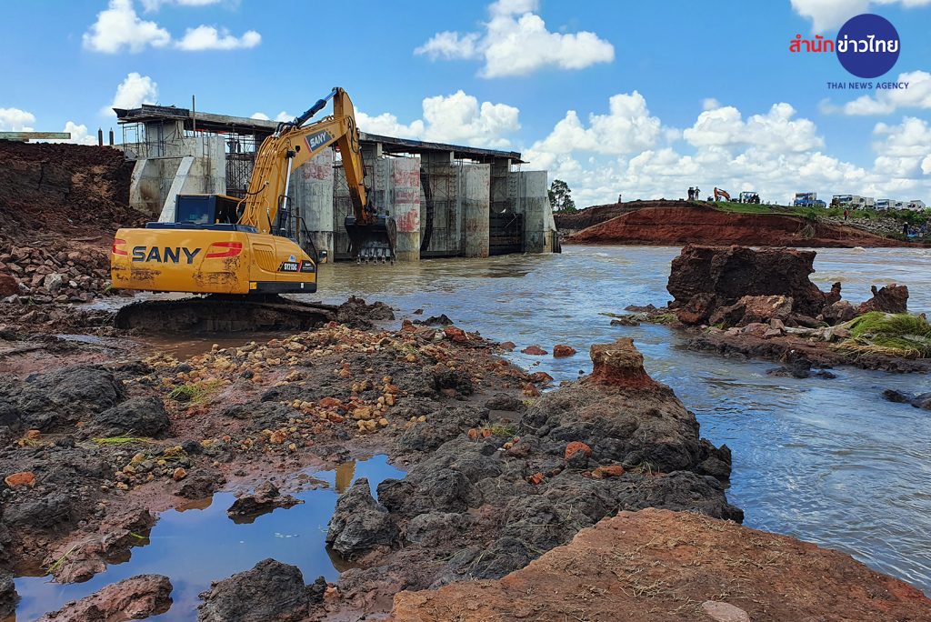 กรมชลประทาน ระดมเครื่องจักรหนักเร่งซ่อมแซมอ่างเก็บน้ำลำเชียงไกร ซึ่งในวันนี้ระดับน้ำในอ่างได้เริ่มลดต่ำลง เจ้าหน้าที่ฝ่ายช่างชลประทาน ได้ใช้เครื่องจักรหนักรถแบคโฮเริ่มลำเลียงถุงบิ๊กแบ็กที่บรรจุด้วยก้อนหินขนาดใหญ่ มาเตรียมพร้อมเพื่อจะนำทิ้งลง ปิดกั้นทางน้ำตรงข้างแนวประตูของอ่างเก็บน้ำที่พังลงเพื่อชะลอน้ำ ก่อนที่ทำการซ่อมแซมประตูน้ำต่อไป