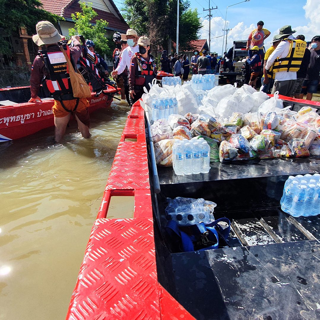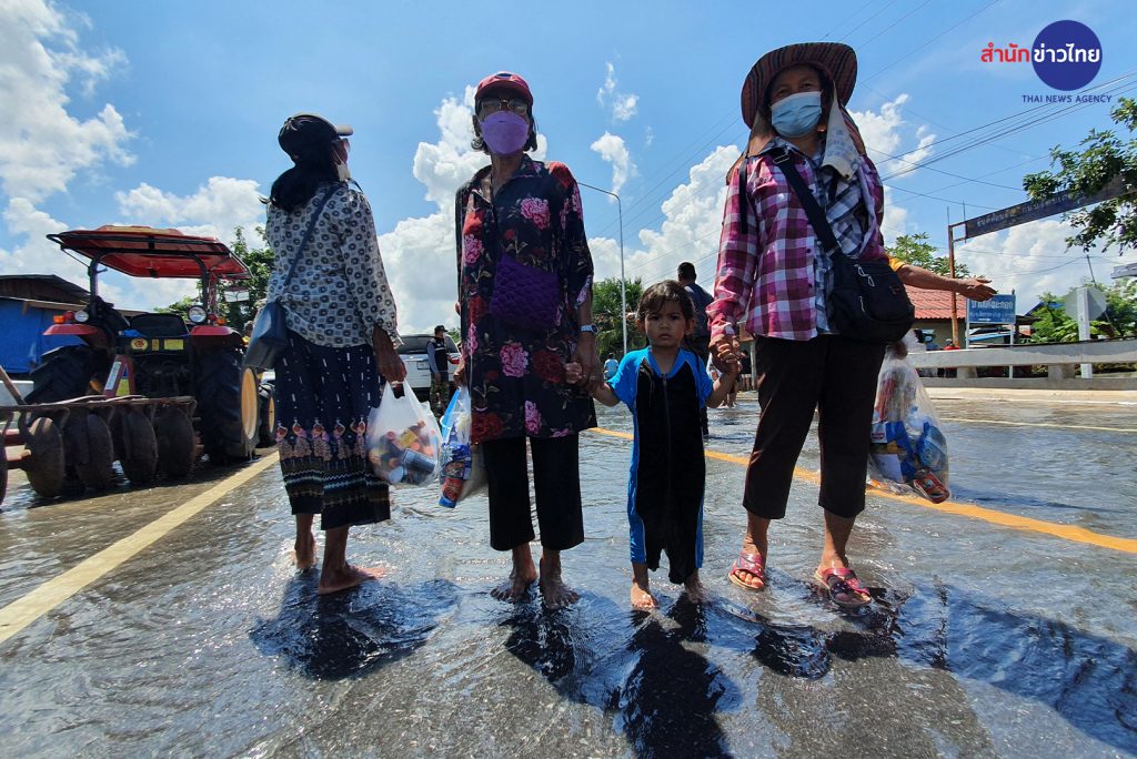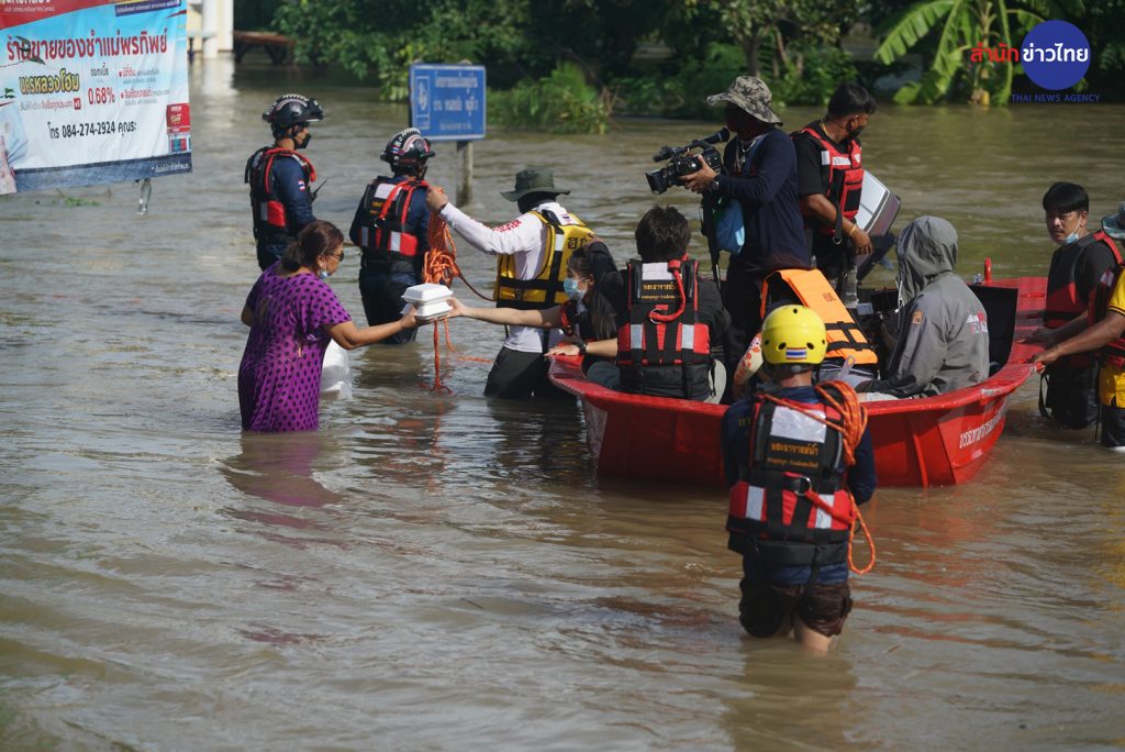 หลายหน่วยงานช่วยกันนำอาหาร ข้าวกล่อง น้ำดื่ม อาหารแห้ง เข้ามาช่วยเหลือชาวบ้านที่ประสบอุทกภัย ในพื้นที่ที่ยังมีน้ำท่วมสูง ตำบลเมืองปราสาท อำเภอโนนสูง โดยใช้รถยกสูงเข้าพื้นที่ ชาวบ้านต้องลุยน้ำออกมารับอาหาร วันนี้ระดับน้ำเริ่มลดลงบ้างแล้วแต่ยังถือว่าสูง บางจุดเกือบ 2 เมตร ในพื้นที่ตำบลเมืองปราสาท มี 6 หมู่บ้านที่ได้รับผลกระทบหนัก ล่าสุดพบสันคอสะพานทางโค้ง บ้านหนองอ้อ หมู่ที่ 3 ถูกน้ำซัดขาด รถไม่สามารถผ่านได้
