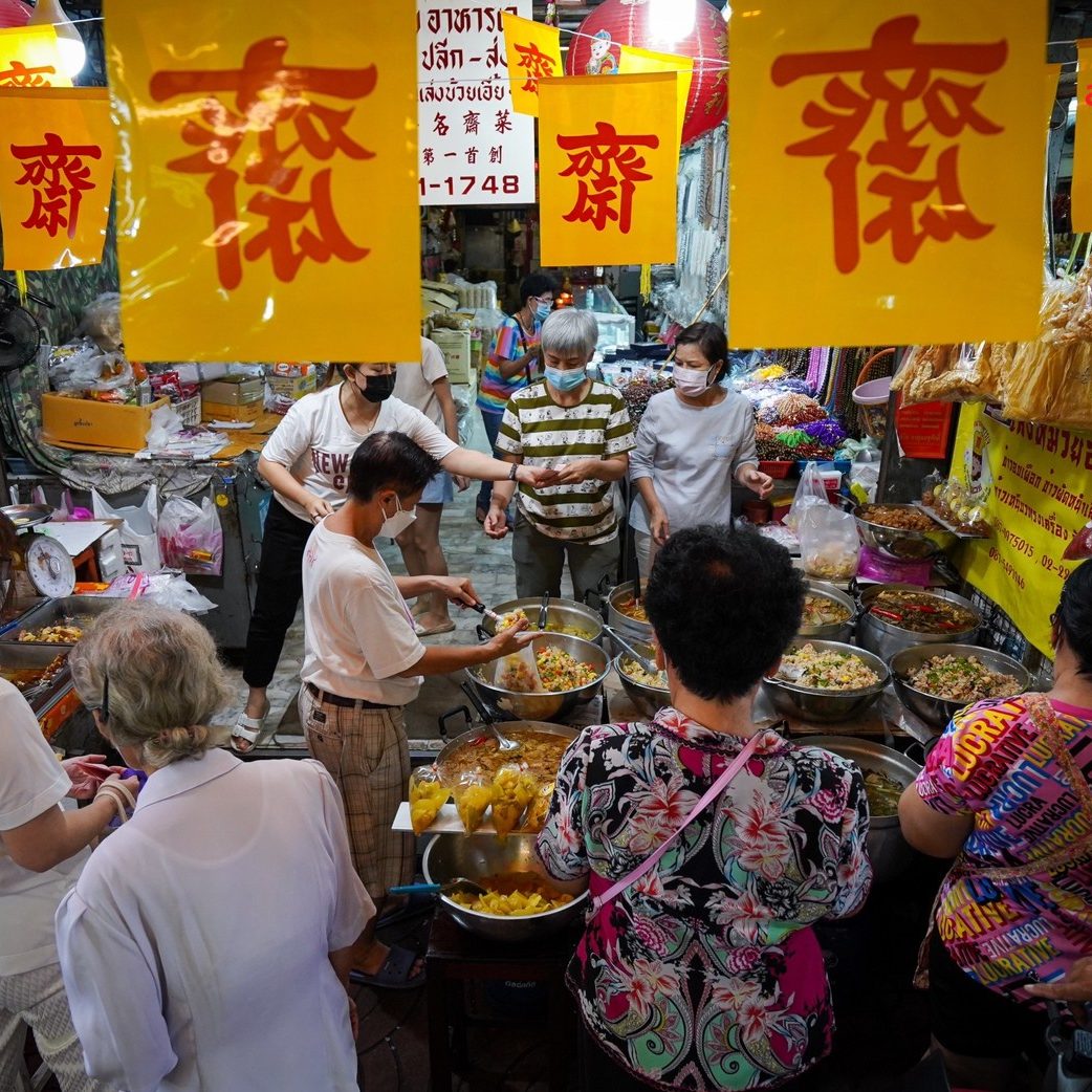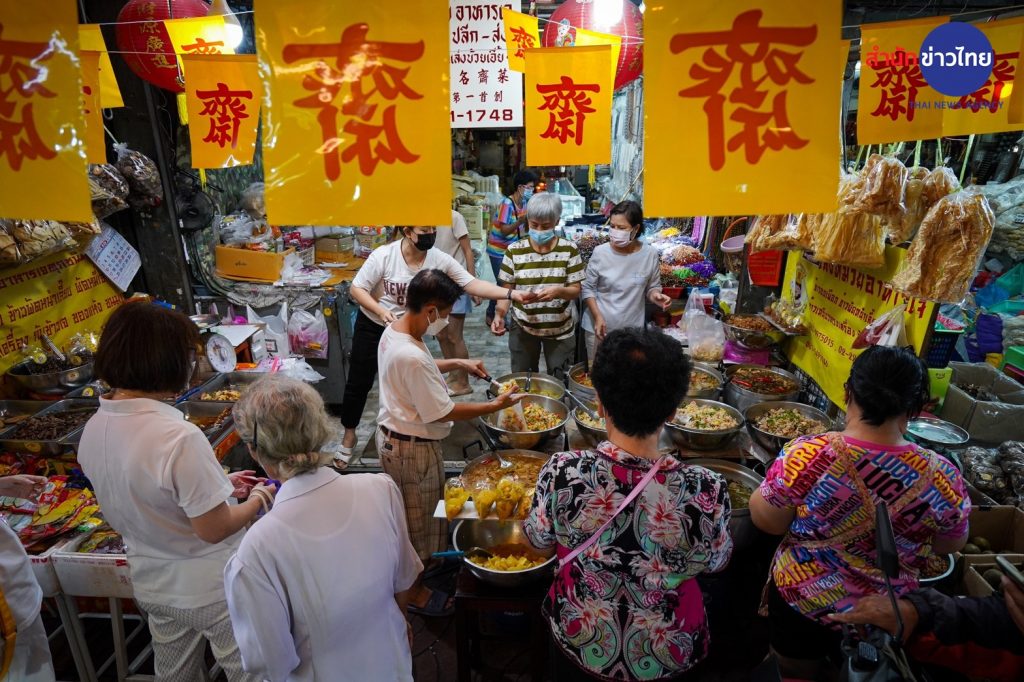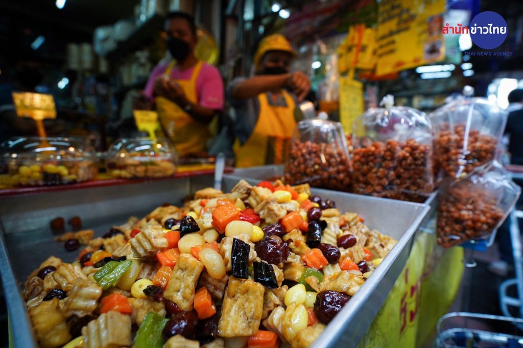 บรรยากาศเทศกาลกินเจ ย่านเยาวราช เขตสัมพันธวงศ์ กรุงเทพฯ มีประชาชนออกมาจับจ่าย ซื้ออาหารเจภายในตลาดเก่าเยาวราช เขตสัมพันธวงศ์ กรุงเทพฯ แม้ปีนี้จะงดจัดงานและกิจกรรม เนื่องจากสถานการณ์การแพร่ระบาดของโควิด-19
