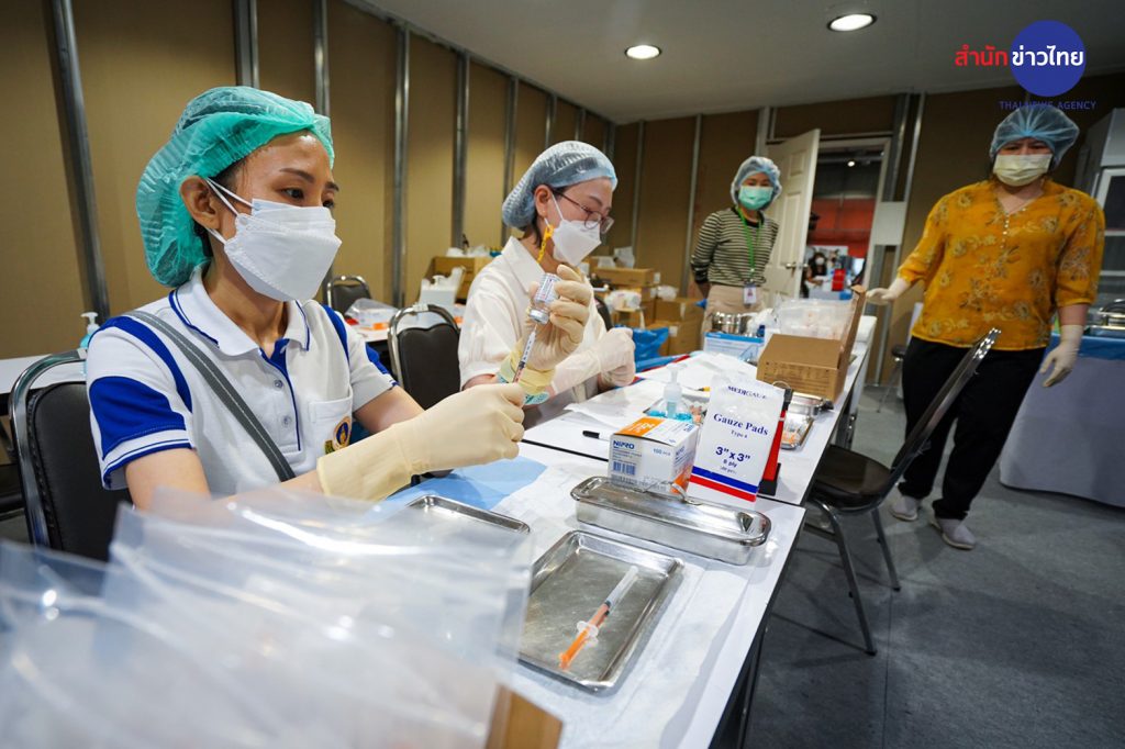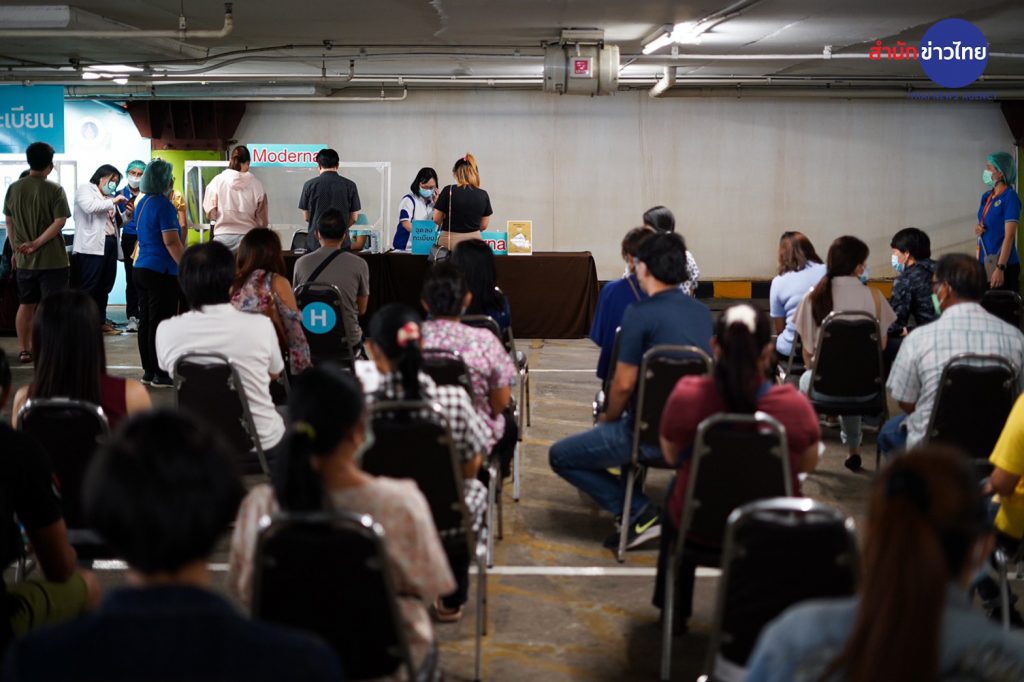 โรงพยาบาลรามาธิบดี ฉีดวัคซีนโมเดอร์นา วันแรก ที่ศูนย์ฉีดนอกโรงพยาบาล เซ็นทรัลพลาซาลาดพร้าว มีประชาชนที่สั่งจองวัคซีนโมเดอร์นากับโรงพยาบาลรามาธิบดี เดินทางมาฉีดวัคซีนต่อเนื่อง โดยตั้งเป้าฉีดวันนี้ 500 คน