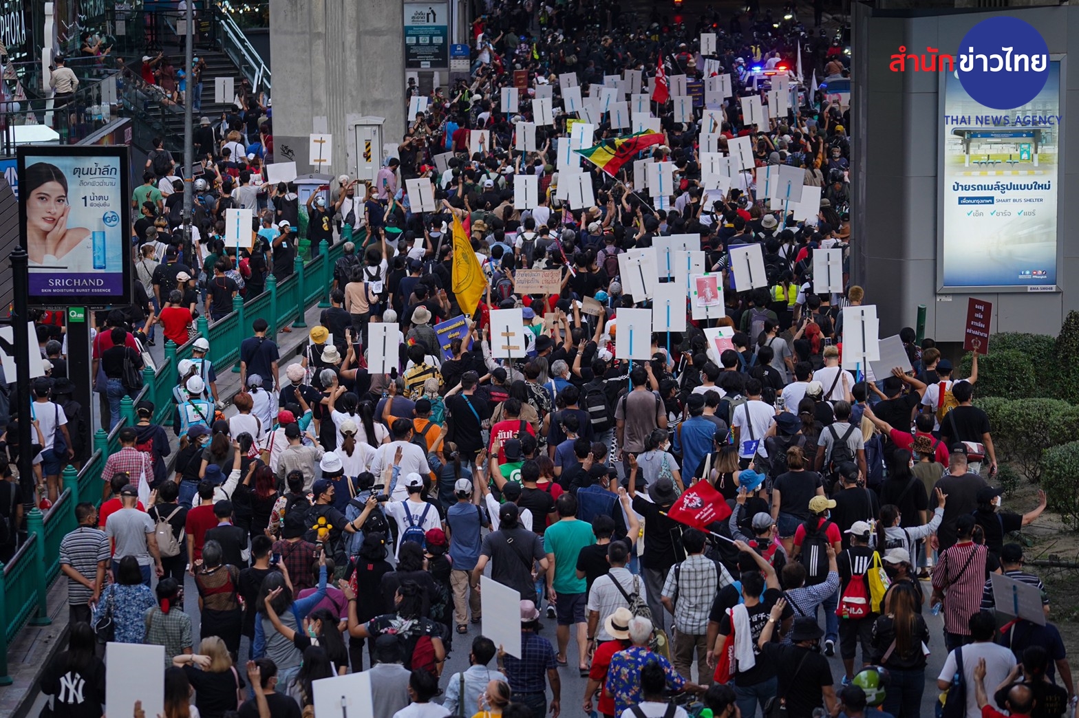 14 พ.ย.64 ผู้ชุมนุม #ม็อบ14พฤศจิกา เคลื่อนขบวนจากสี่แยกปทุมวันไปยังสถานทูตเยอรมนี ย่านสาทร
