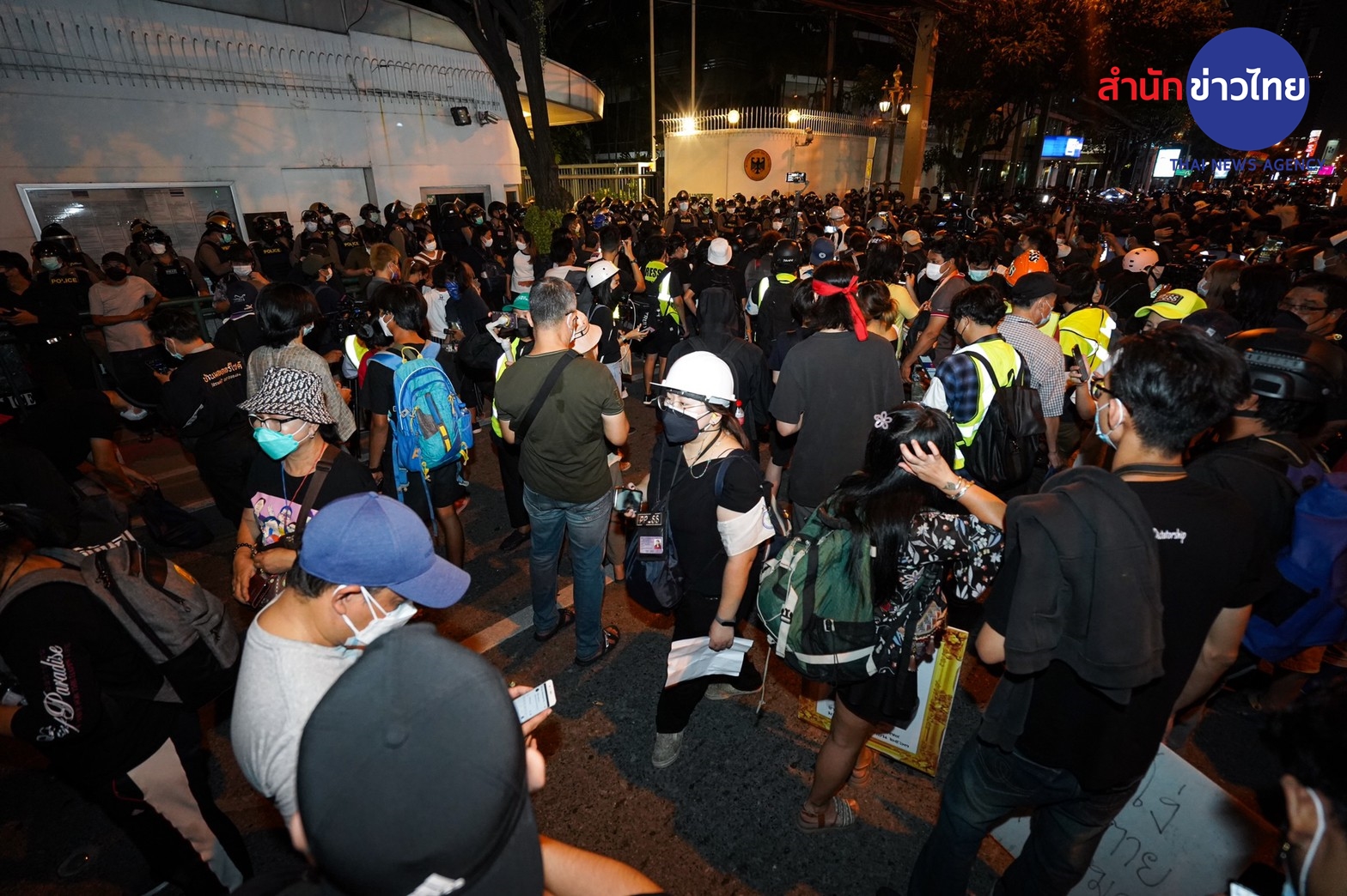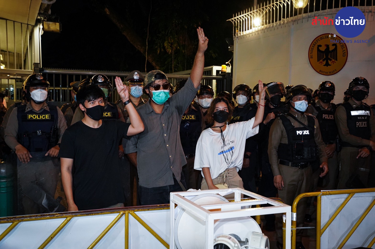 18.30 น. ผู้ชุมนุมถึงสถานทูตเยอรมนี มีตัวแทนสถานทูตรับหนังสือ พร้อมมีตัวแทนผู้ชุมนุมเข้าไปพูดคุยภายในสถานทูต