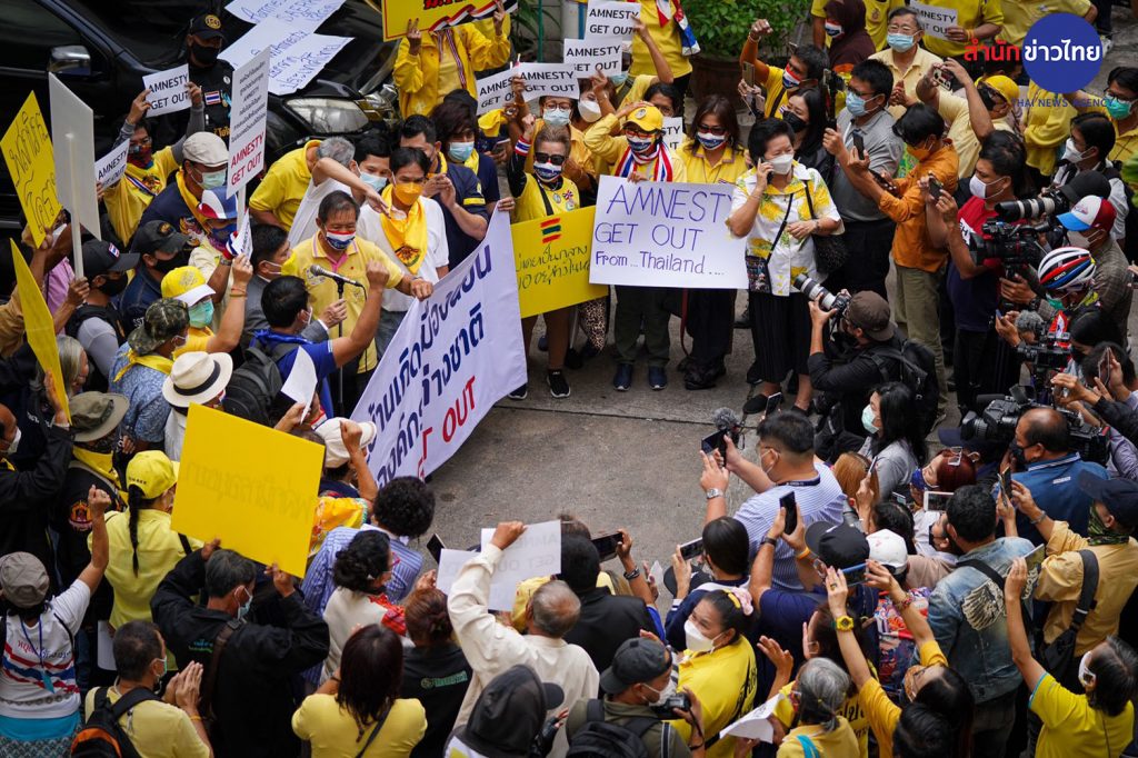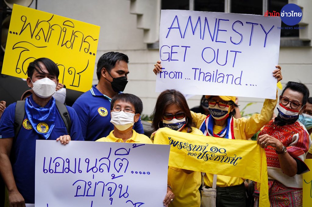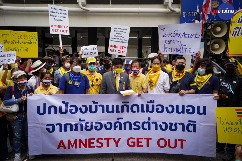 เนื่องจากปรากฏเหตุการณ์ว่า แอมเนสตี้ไทยได้ประกาศแคมเปญเขียนจดหมายล้านฉบับถึงทั่วโลก จี้ทางการไทยให้หยุดดำเนินคดีกับ น.ส.ปนัสยา สิทธิจิรวัฒนกุล หรือ รุ้ง ถือว่าองค์กรดังกล่าวเข้ามาแทรกแซงกิจการภายในประเทศ จงใจไม่ปฏิบัติตามกฎหมายของประเทศไทย เนื่องจากคำวินิจฉัยของศาลรัฐธรรมนูญ เมื่อวันที่ 10 พฤศจิกายน 2564 นั้น ผูกพันทุกองค์กร ซึ่งการกระทำขององค์กรดังกล่าวอาจถือได้ว่า อยู่เบื้องหลังการสนับสนุนบุคคลหรือกลุ่มบุคคลกระทำการจาบจ้วงอย่างหลีกเลี่ยงไม่ได้ ทั้งนี้หากพบข้อมูลหลักฐานอันเชื่อได้ว่าองค์กรดังกล่าวมีจุดมุ่งหมายแทรกแซงกิจการความมั่นคงของประเทศ ขอให้มีมาตรการทางกฎหมายจัดการกับองค์กรนี้ให้พ้นออกไปจากประเทศไทย