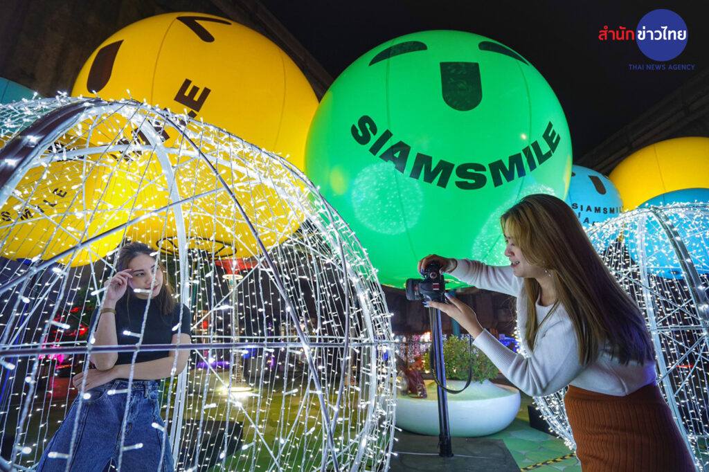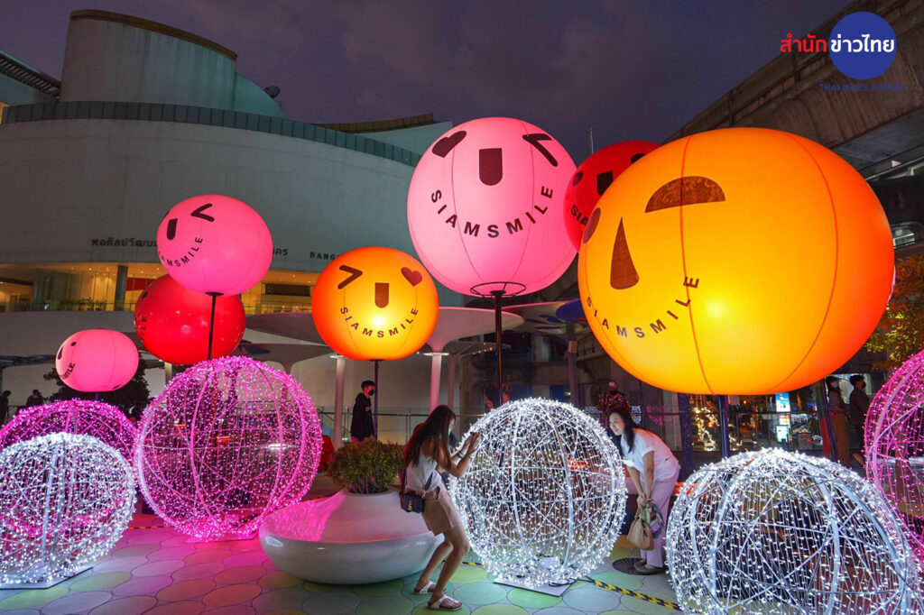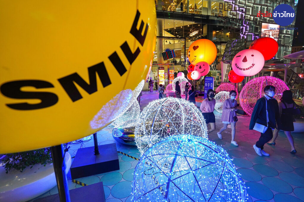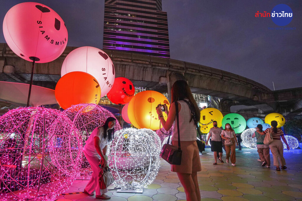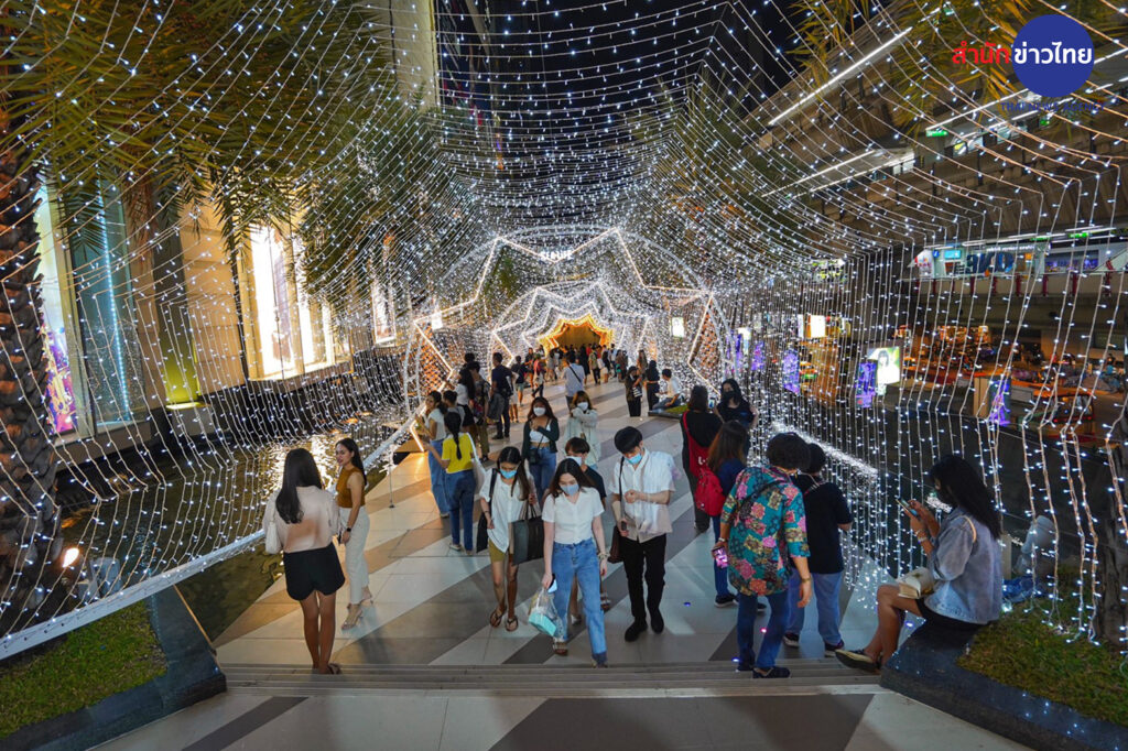 หน้าห้างสรรพสินค้าหลายแห่ง ย่านสยามสแควร์ จัดไฟหลากสีสัน ชวนคนเดินเก็บภาพสวยๆ ช่วงเทศกาลส่งท้ายปีเก่าต้อนรับปีใหม่ 2022 หลังสถานการณ์การแพร่ระบาดของโรคติดเชื้อไวรัสโคโรนา 2019 (covid-19) มีแนวโน้มดีขึ้น ทำให้หลายสถานที่กลับมาจัดงานได้อีกครั้ง