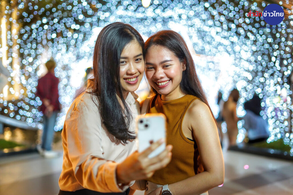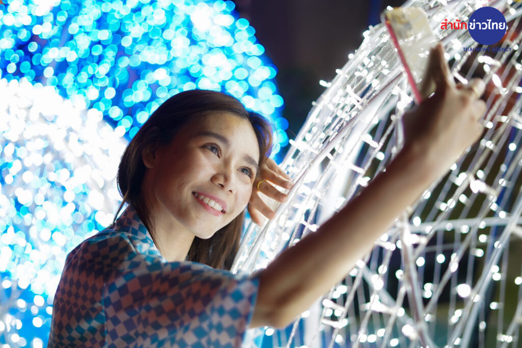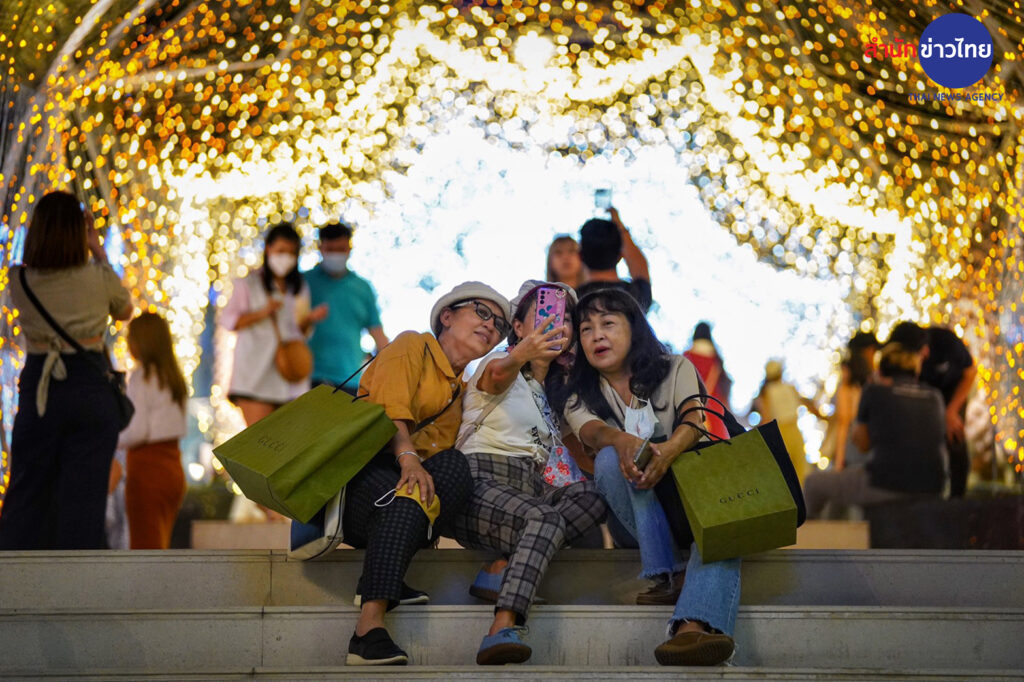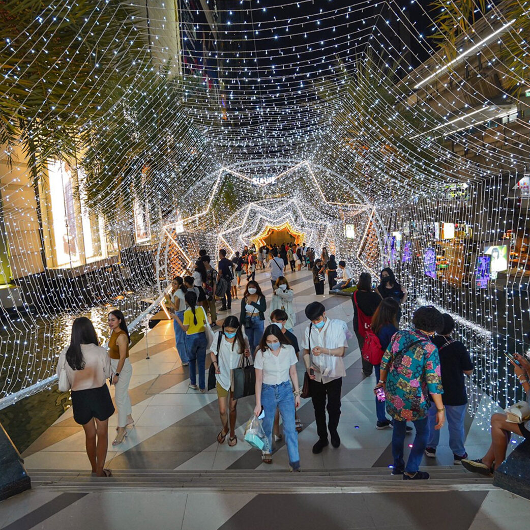 หน้าห้างสรรพสินค้าหลายแห่ง ย่านสยามสแควร์ จัดไฟหลากสีสัน ชวนคนเดินเก็บภาพสวยๆ ช่วงเทศกาลส่งท้ายปีเก่าต้อนรับปีใหม่ 2022 หลังสถานการณ์การแพร่ระบาดของโรคติดเชื้อไวรัสโคโรนา 2019 (covid-19) มีแนวโน้มดีขึ้น ทำให้หลายสถานที่กลับมาจัดงานได้อีกครั้ง