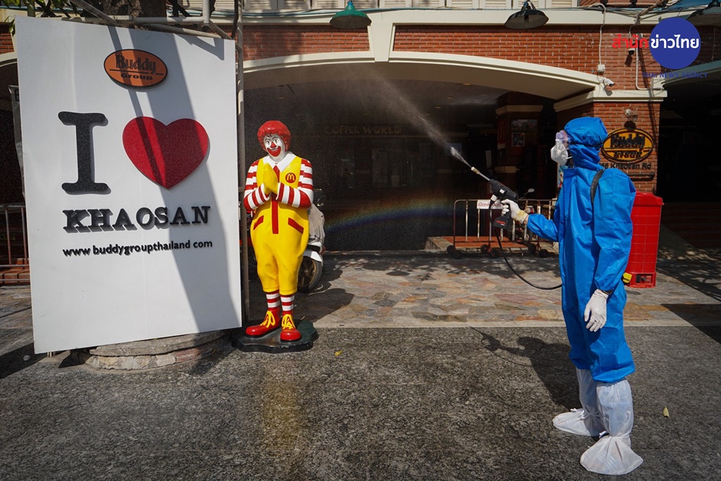 วันนี้ (5 ม.ค.) ที่บริเวณถนนข้าวสาร นายธนวินท์ ภิญโญโสภณ ประธาน อปพร.เขตพระนคร ได้รับการประสานจากทางเขตพระนคร ให้นำทีมอาสาสมัคร 6 คน นำน้ำยาฆ่าเชื้อและเข้าฉีดพ่นน้ำยาฆ่าเชื้อบริเวณสถานบันเทิงในย่านถนนข้าวสาร โดยนายธนวินท์ เผยว่า ก่อนหน้านี้ตนและทีมอาสาสมัคร อปพร. เขตพระนครได้ร่วมกันทำหน้าที่ฉีดพ่นฆ่าเชื้อบริเวณถนนข้าวสารและในเขตพระนครอาทิตย์ละ 1 ครั้ง มาตลอด 2 ปี กระทั่งมีข่าวพบนักท่องเที่ยวต่างชาติติดเชื้อโควิดจึงได้รับการประสานงานจากทางเขตพระนครให้มาฉีดพ่นน้ำยาฆ่าเชื้อโรคภายในร้านที่ให้บริการแก่ลูกค้าทุกร้านบนพื้นที่ถนนข้าวสาร เพื่อป้องกันการแพร่เชื้อโรคโควิด-19 โดยจะทำการฉีดพ่นน้ำยาฆ่าเชื้อทุกชั้นที่มีลูกค้ามาใช้บริการ เพื่อเตรียมความในการเปิดให้บริการ โดยในส่วนของเจ้าหน้าที่มีชุดเซฟตี้ป้องกันการติดเชื้ออย่างรัดกุม