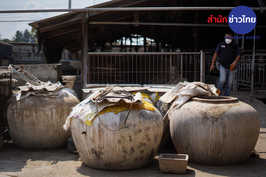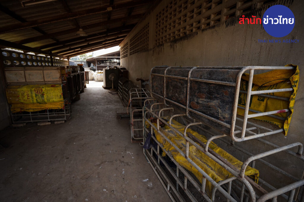 นายชาตรี กิจสมัคร หรือ เฮียแป้น เจ้าของฟาร์มสุกรแห่งหนึ่งใน อ.สามพราน จ.นครปฐม เล่าให้ฟังถึงผลกระทบจากโรคระบาด ASF เมื่อประมาณ 2 ปีที่ผ่านมา ฟาร์มหมูหลายแห่งเริ่มมีหมูทยอยตายเป็นจำนวนมาก ส่วนฟาร์มของตนเริ่มมีการระบาด และหมูเริ่มทยอยตายเมื่อกลางปี 2564 ปัจจุบันเหลือเพียง 40 ตัว ทำให้ต้องสูญเงินไปกว่า 30 ล้านบาท