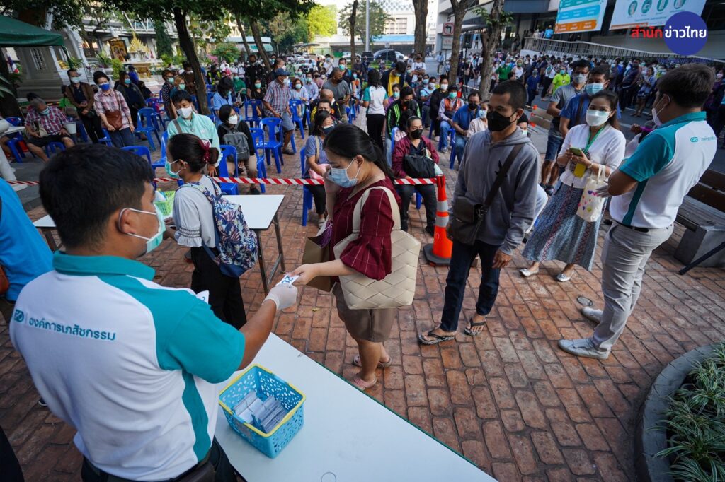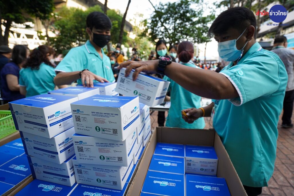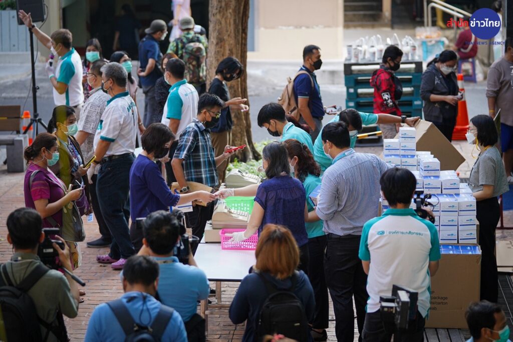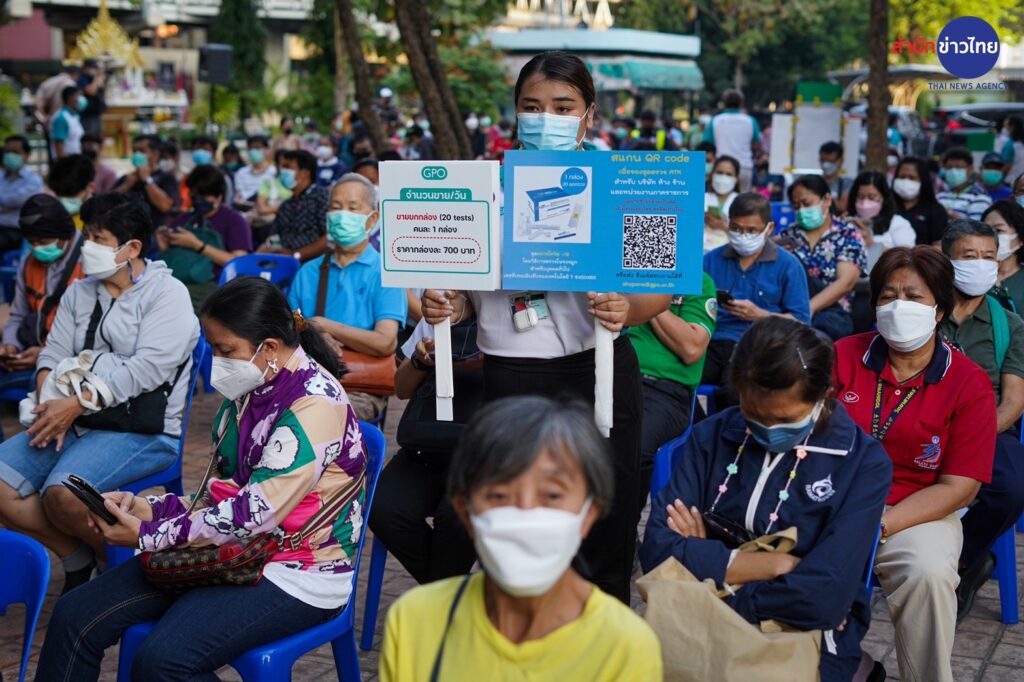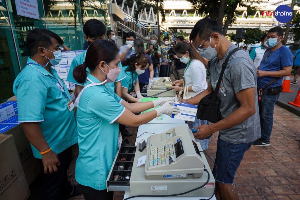 ซึ่งบรรยากาศการจัดคิวเป็นไปด้วยความเรียบร้อย มีการเว้นระยะห่าง จัดระบบการรับบัตรคิว รอจ่ายเงิน และรับชุดตรวจเป็นแถวอย่างเป็นระเบียบ
