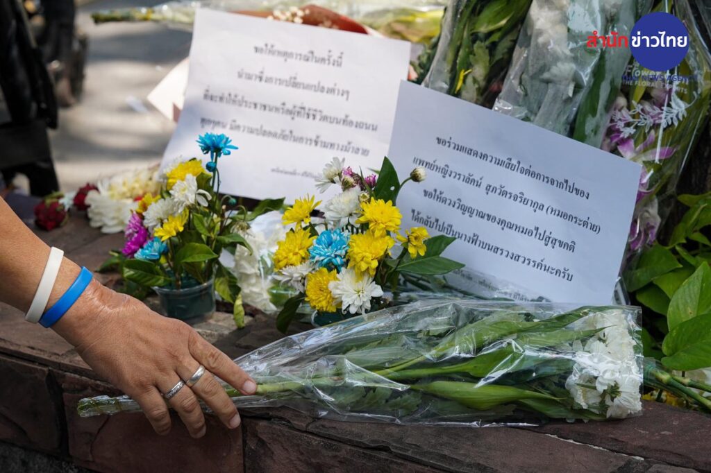 เมื่อเวลา 11.00 น. หน้าสถาบันโรคไตภูมิราชนครินทร์ ตัวแทนเครือข่ายเมาแล้วขับ นายเจษฎา แย้มสบาย เหยื่อจากอุบัติเหตุทางท้องถนน นำดอกไม้มาวางเพื่อไว้อาลัย “หมอกระต่าย” ที่เสียชีวิตจากอุบัติเหตุข้ามทางม้าลาย และเรียกร้องให้หน่วยงานที่เกี่ยวข้องเร่งดำเนินการให้ทางม้าลายเป็นช่องทางที่ปลอดภัยสำหรับคนข้ามถนน และคนขับรถควรทราบ มีจิตสำนึกต่อการขับรถ มีวินัยจราจร และขอให้มีบทลงโทษที่รุนแรงขึ้น สำหรับผู้กระทำความผิด พร้อมขอให้เคสนี้ เป็นเคสสุดท้ายจากการข้ามถนนบนทางม้าลาย โดยที่ผ่านมา กรณีอุบัติเหตุบนทางม้าลาย 95% เสียชีวิต อีก 5% พิการ