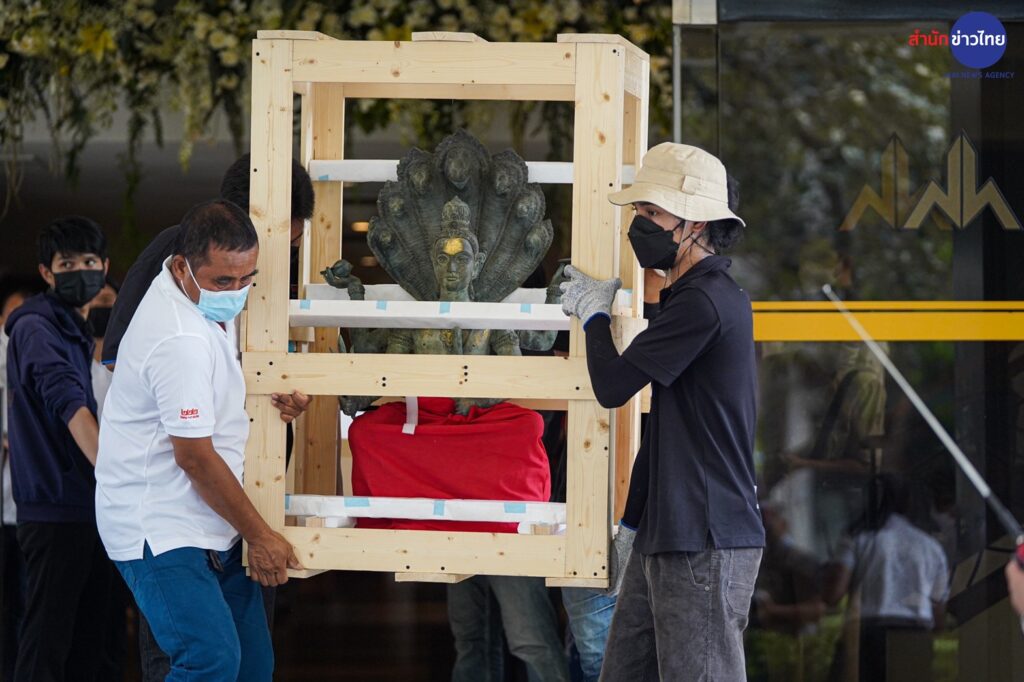 (18 ก.พ.2565) บรรยากาศขนย้าย พระนารายณ์ ที่ประดิษฐ์ฐานอยู่บนดาดฟ้า ของโรงแรมนารายณ์ สีลม หลังโรงแรมเตรียมพลิกโฉมครั้งใหญ่ เพื่อปรับเปลี่ยนพื้นที่ให้เป็นแลนด์มาร์กแห่งใหม่ในย่านสีลม ภายใต้แนวคิด “Be Part of Everyone community” หลังจากเปิดให้บริการมากว่า 54 ปี ซึ่งวันนี้มีทั้งพนักงานปัจจุบันและอดีตพนักงานของโรงแรม ทยอยเดินทางมาร่วมเก็บภาพบันทึกความทรงจำ