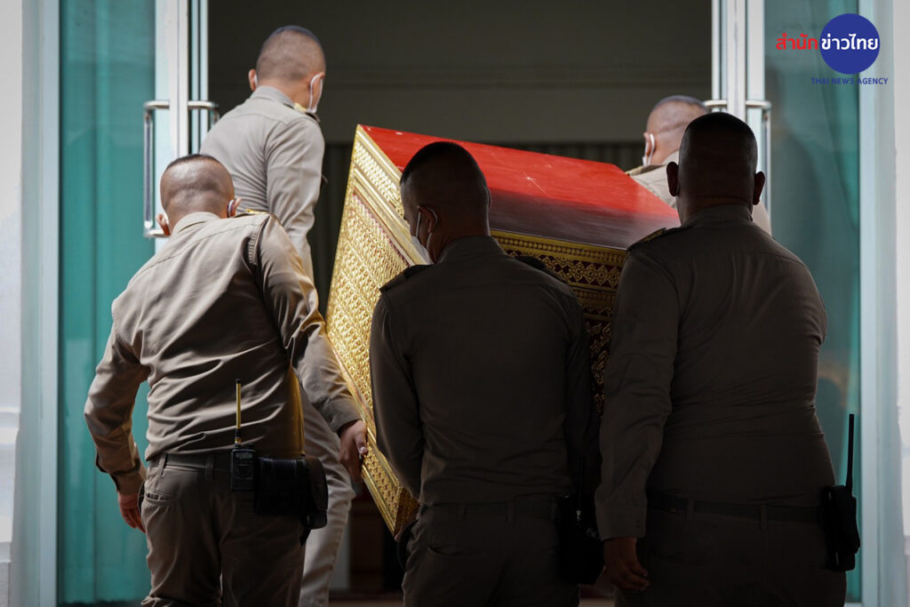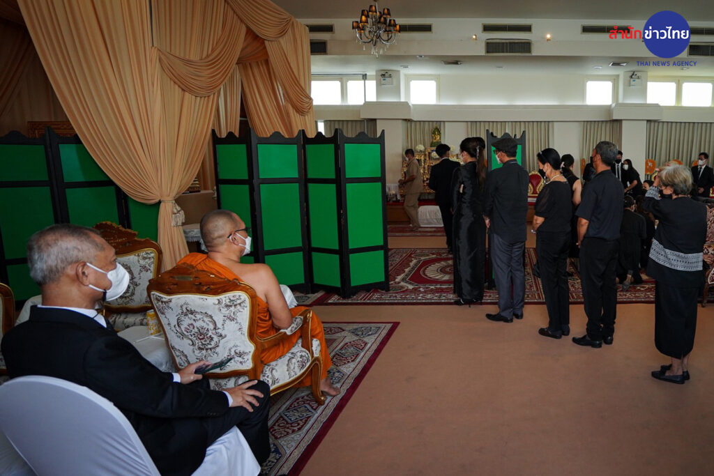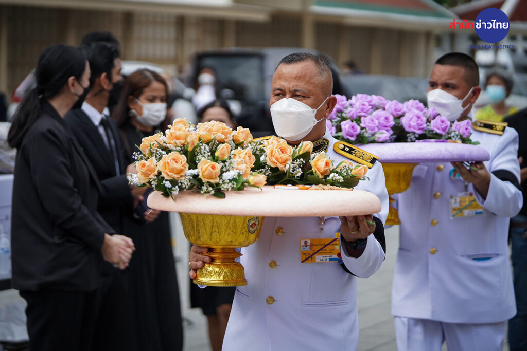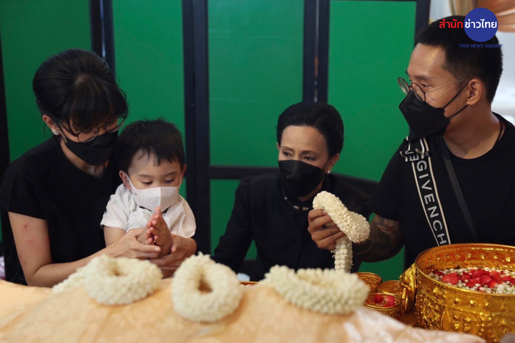 และเมื่อเวลา 17.30 น. มีการประกอบพิธีพระราชทานน้ำหลวงอาบศพ โดยมี พลเอกดาว์พงษ์ รัตนสุวรรณ องคมนตรี เป็นประธานเชิญน้ำหลวงอาบศพ เพื่อประกอบพิธี ท่ามกลางความอาลัยของครอบครัว และช่วงเวลา 19.00 น. จะเริ่มสวดพระอภิธรรมเป็นวันแรก ทั้งนี้ครอบครัวจะเก็บศพไว้บำเพ็ญกุศล 100 วัน และกรมส่งเสริมวัฒนธรรมจะดำเนินการขอพระราชทานเพลิงศพต่อไป