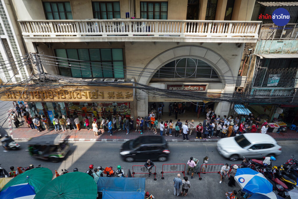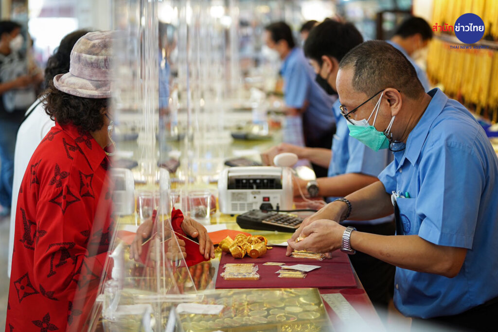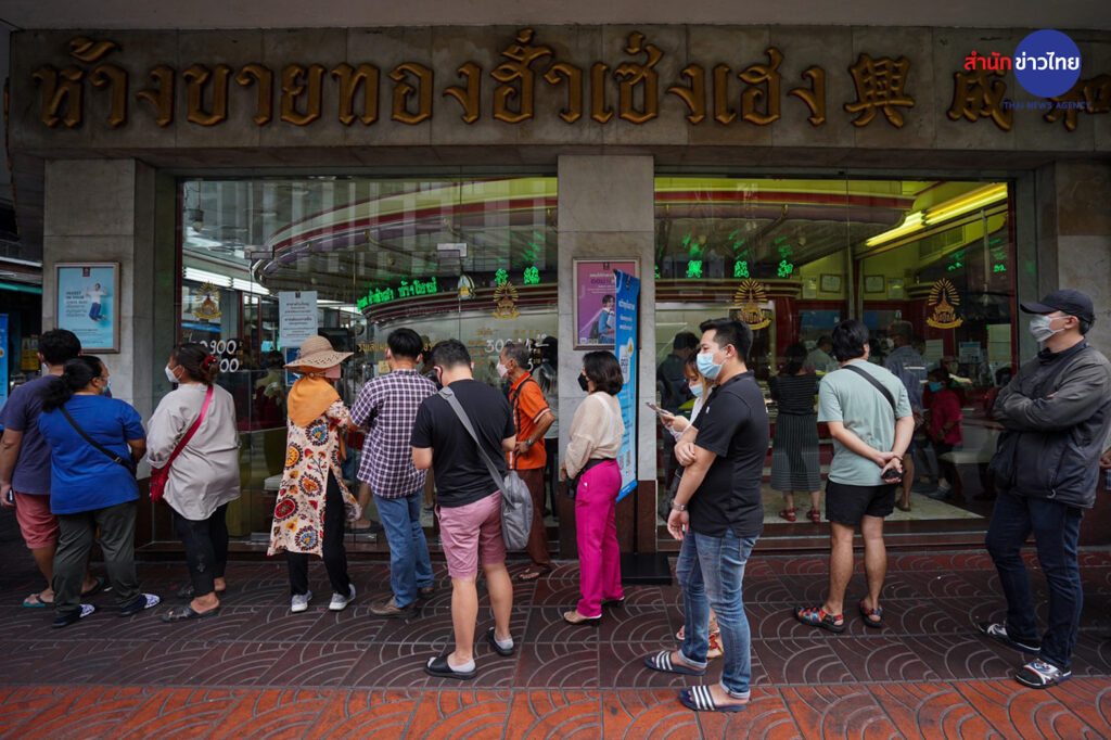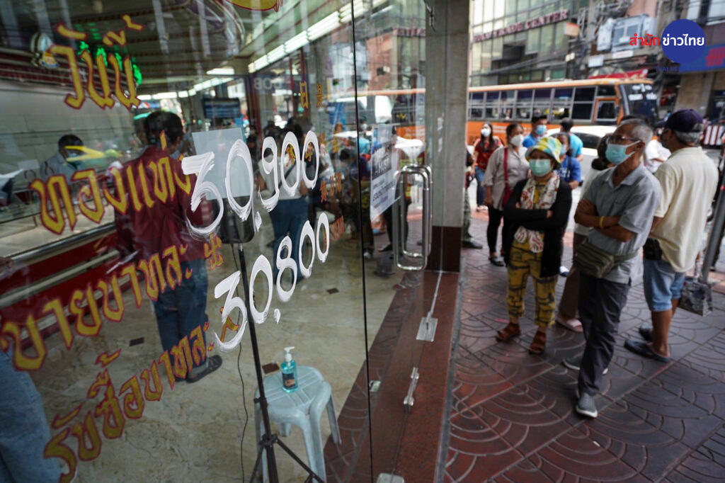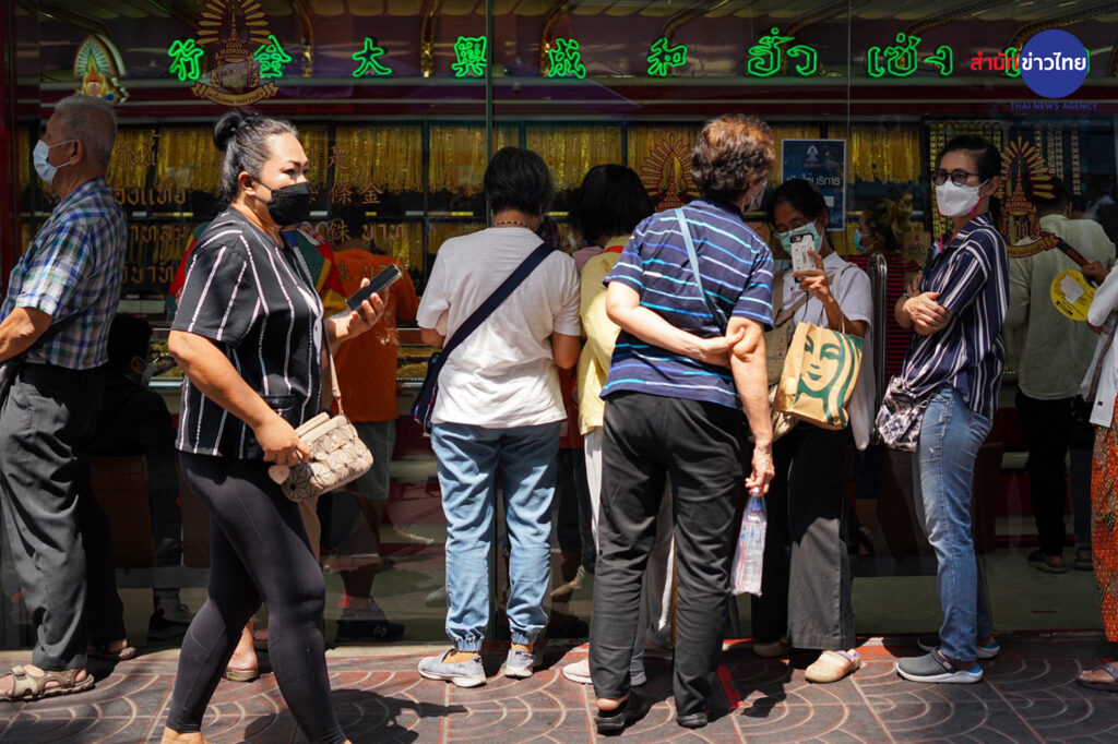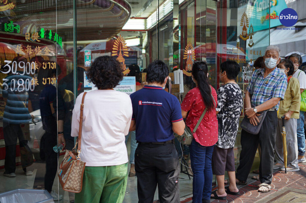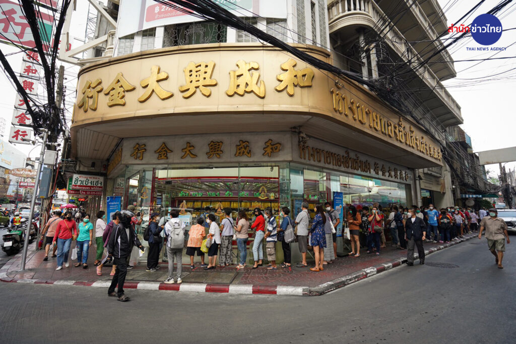วันนี้ (10 มี.ค. 65) บรรยากาศประชาชนต่อคิว เข้าร้านทองย่านถนนเยาวราช เพื่อนำทองคำ มาขายในช่วงที่ราคาทองปรับตัวสูงขึ้น โดยเช้าวันพฤหัสบดีที่ 10 มี.ค. 65 เวลา 09:23 น. ทองคำเปิดตลาดที่ราคา ทองคำแท่งรับซื้อเข้าบาทละ 30,800 ขายออกบาทละ 30,900 ทองรูปพรรณ รับซื้อบาทละ 30,244.20 ขายออกบาทละ 31,400.00