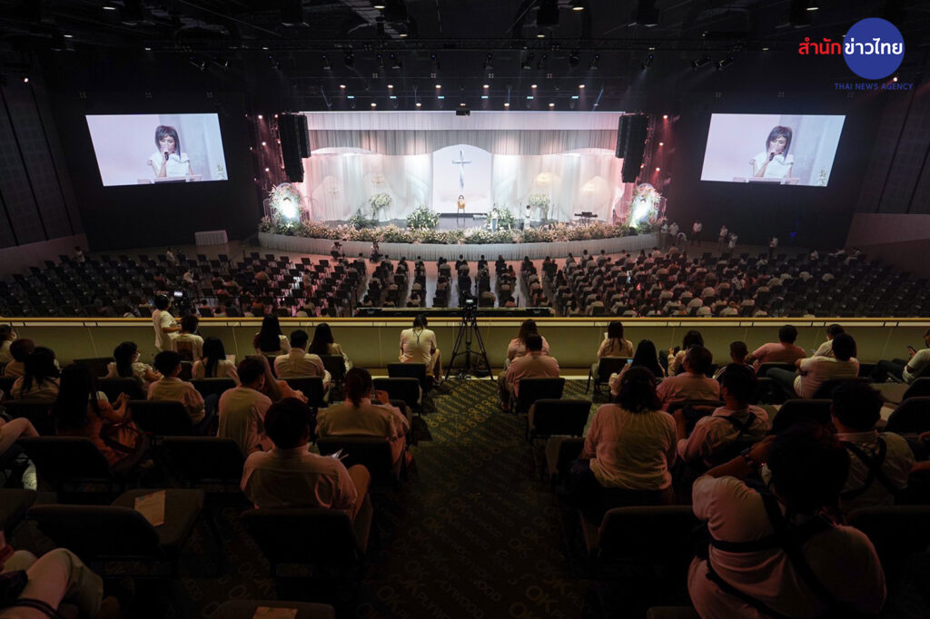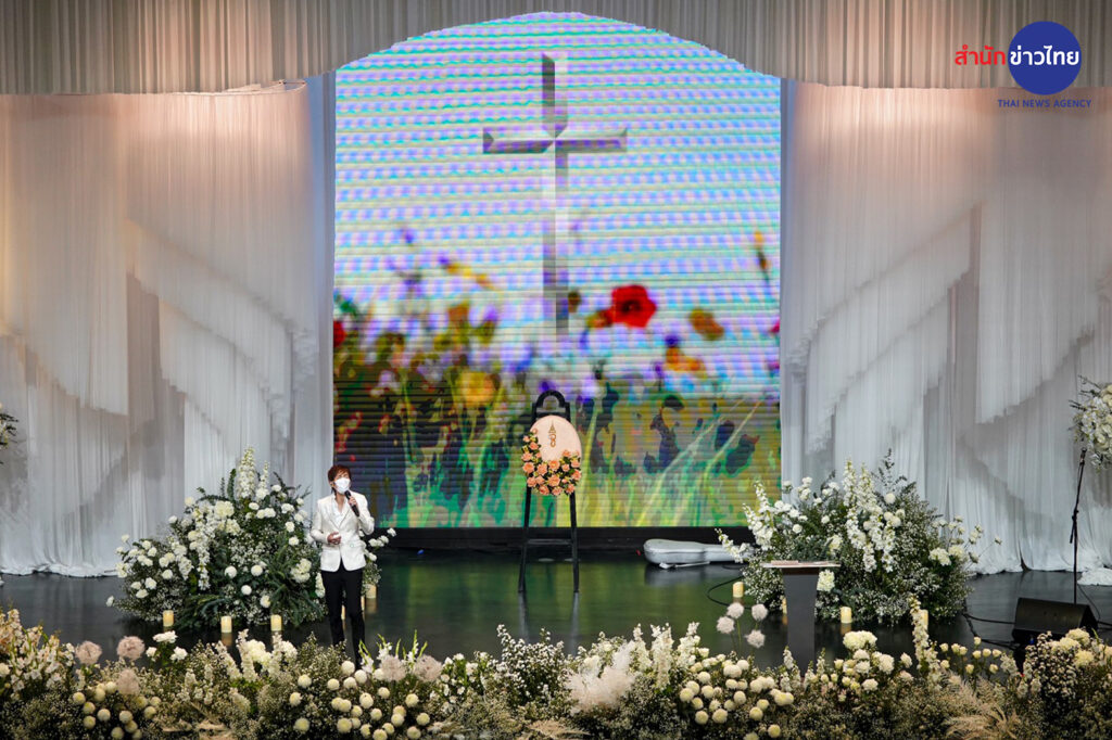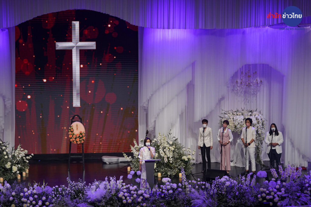 ศาสนาจารย์ธงชัย ประดับชนานุรัตน์ ขึ้นกล่าวแบ่งปันคติธรรมคริสเตียนถึงชีวิตหลังความตายของ “แตงโม” ก่อนที่จะนำกล่าวอธิษฐานขอพรให้ครอบครัวแตงโม และปิดพิธีในเวลา ประมาณ 20.30 น.