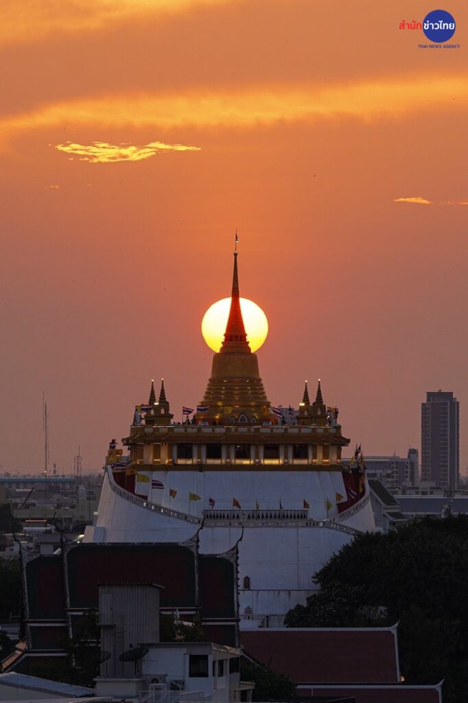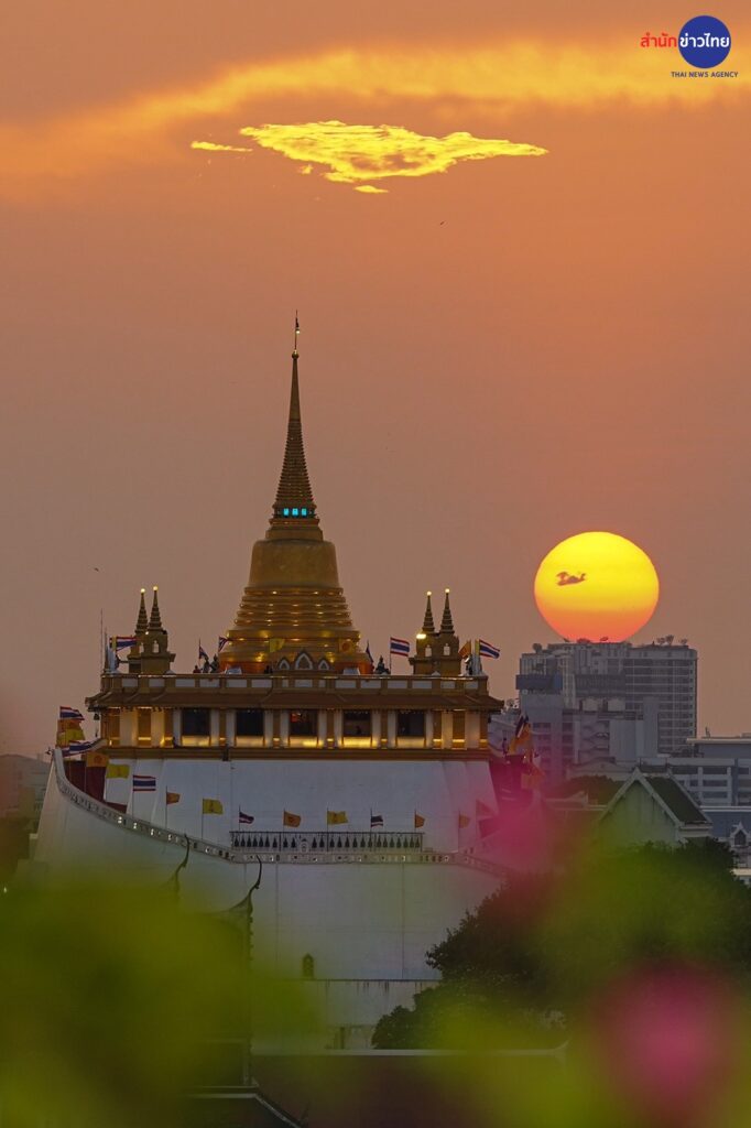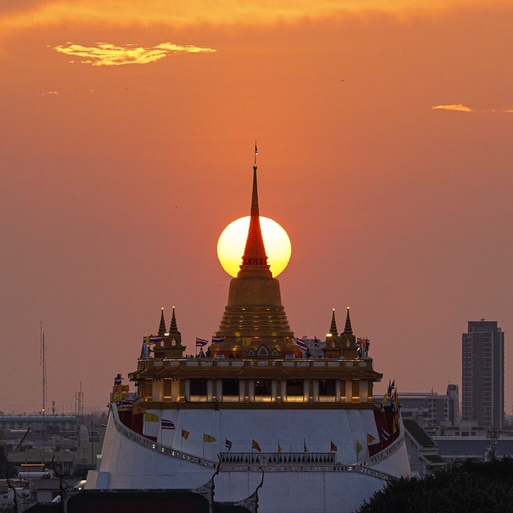ปรากฏการณ์ พระอาทิตย์เคลื่อนมาตรงกับยอดเจดีย์ภูเขาทอง ที่วัดสระเกศราชวรมหาวิหาร หรือ วัดภูเขาทอง จะเกิดขึ้นเพียงแค่ปีละ 2 ครั้ง คือ เดือนมีนาคม และ เดือนตุลาคม ที่พระอาทิตย์ดวงกลมโต จะมาบรรจบที่ตรงนี้พอดี