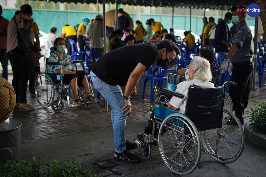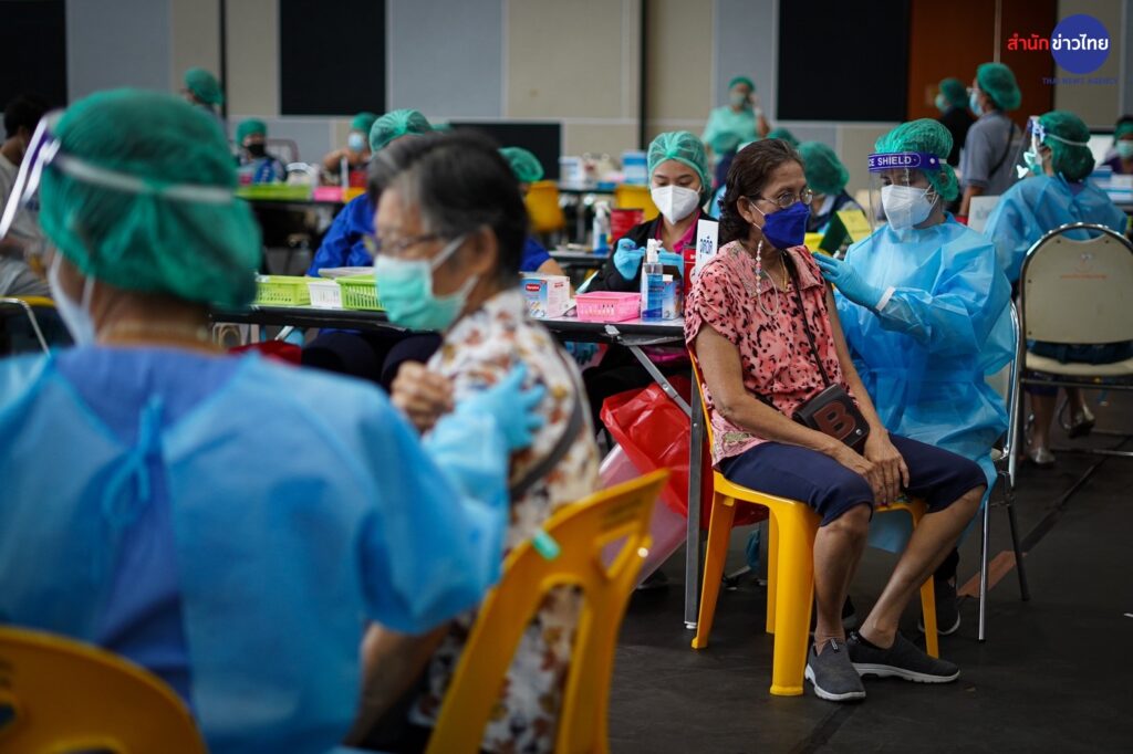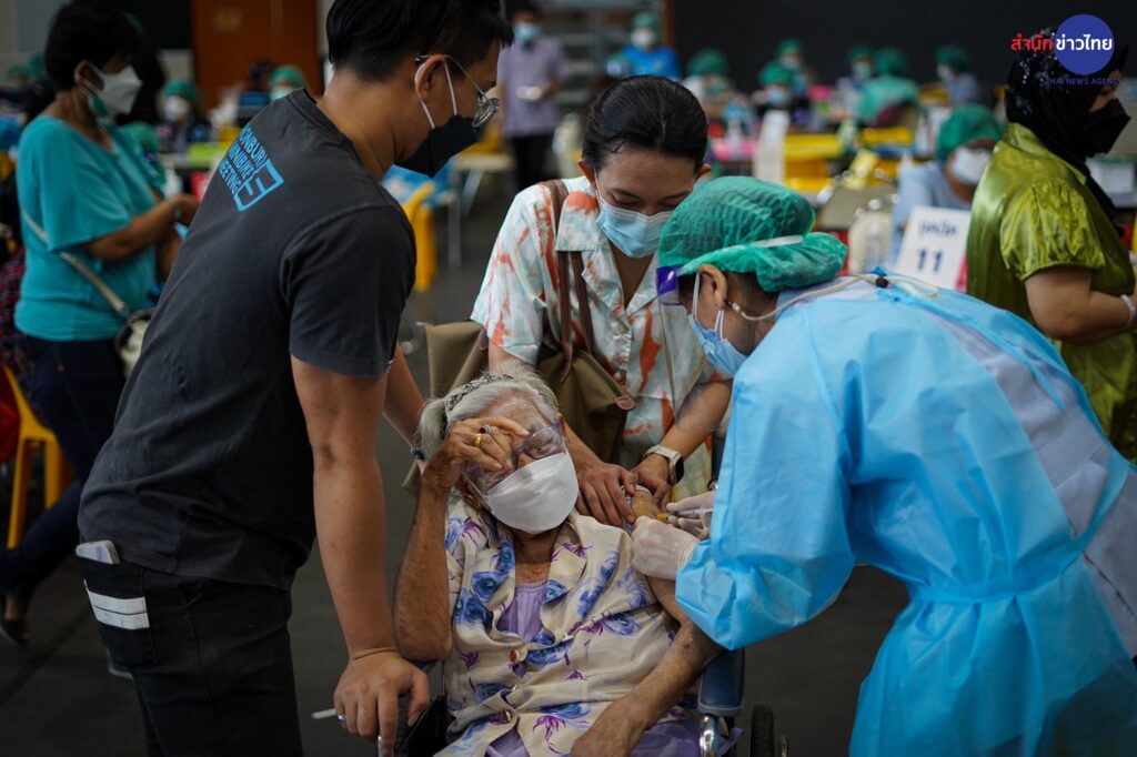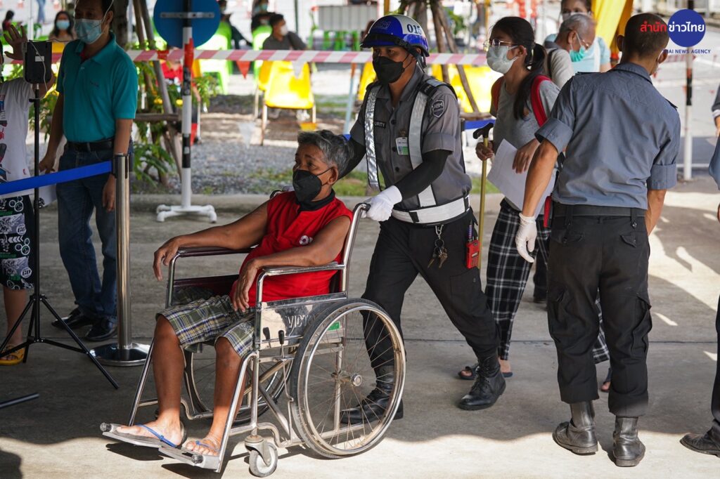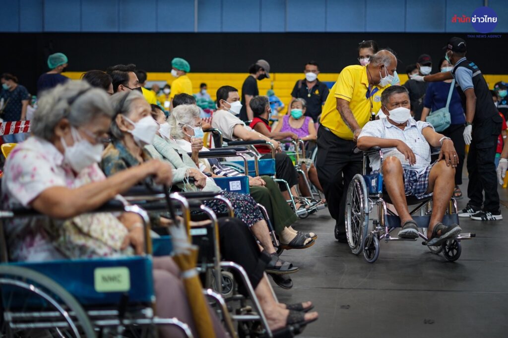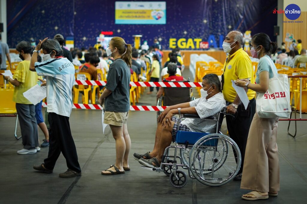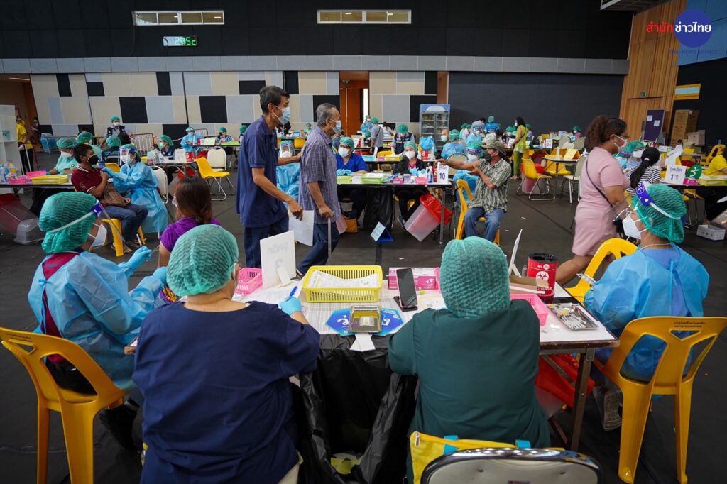 23 มี.ค.2565 ศูนย์ฉีดวัคซีนศูนย์กีฬากำธน สินธวานนท์ กฟผ.บางกรวย เปิด Walk in วันแรกให้กับผู้สูงอายุมารับวัคซีนเข็มกระตุ้น เพื่อลดความรุนแรงของโรค และการสูญเสีย
