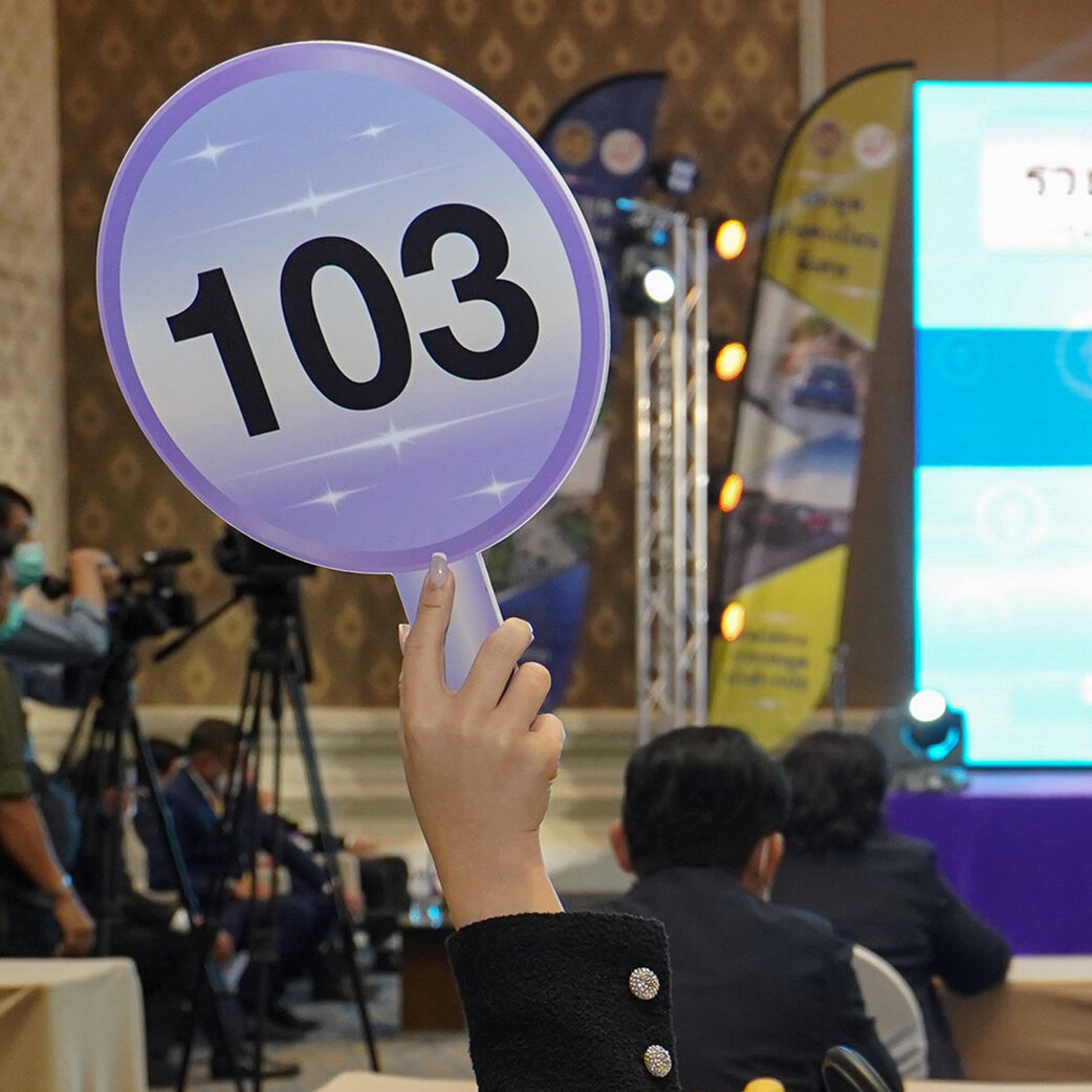 กรมการขนส่งทางบก จัดประมูลหมายเลขทะเบียนรถ เลขสวย ลักษณะพิเศษ ครั้งแรกของไทย โดยมีนายชยธรรม์ พรหมศร ปลัดกระทรวงคมนาคม เป็นประธาน พร้อมด้วยนายจิรุตม์ วิศาลจิตร อธิบดีกรมการขนส่งทางบก บรรยากาศเป็นไปด้วยความคึกคัก มีเศรษฐีที่นิยมเลขสวยเข้าร่วมประมูลชิงป้ายทะเบียน ทั้งเลขสวยและมีคำมงคล