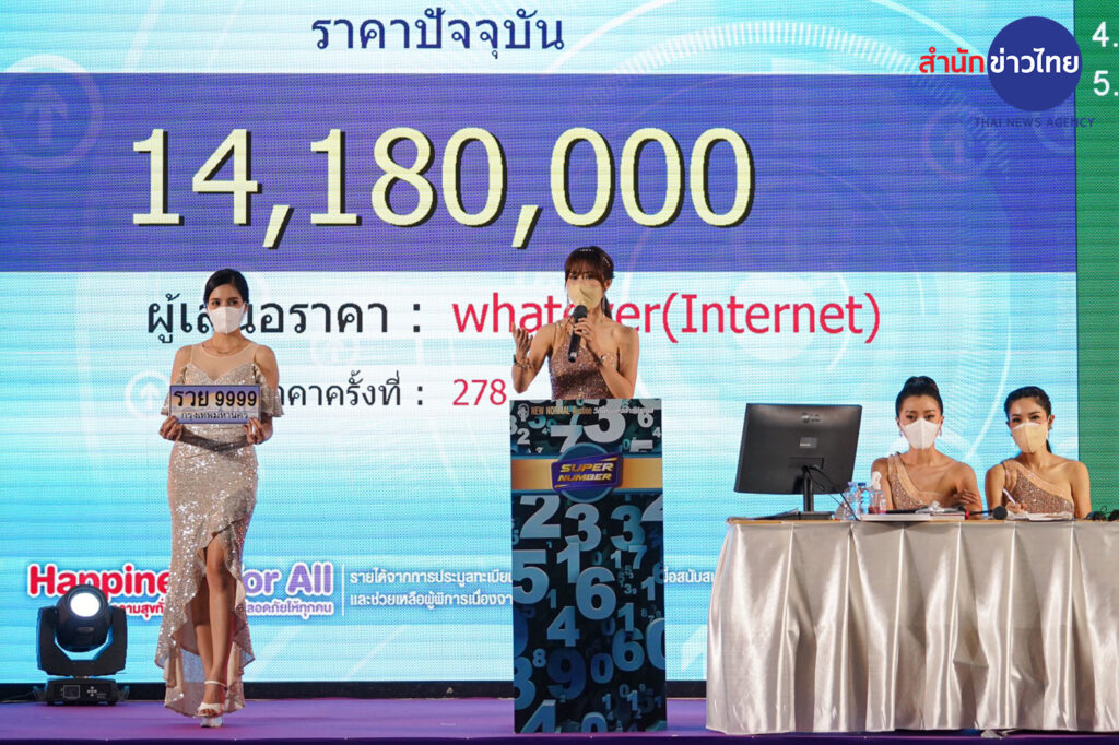 หมายเลขแรกที่นำมาประมูล คือ ป้ายทะเบียน “รวย8888″ ซึ่งมีราคาประมูลเริ่มต้นอยู่ที่ 1,500,000 บาท โดยการประมูลสู้กันดุเดือดจนจบราคาประมูลที่ 11,100,000 บาท อย่างไรก็ตามป้ายที่ครองแชมป์การประมูล คือ “รวย 9999” ซึ่งการประมูลสู้กันดุเดือดระหว่างผู้ที่ประมูลในงานกับทางอินเทอร์เน็ต ราคาประมูลจบที่ 18,560,000 บาท โดยผู้ชนะประมูล เป็นผู้ประมูลผ่านระบบอินเทอร์เน็ตที่ใช้ชื่อว่า “whatever” ทำให้ยอดรายได้จากการประมูลจากสองป้ายแรกนี้พุ่งเกือบ 30 ล้านบาท
