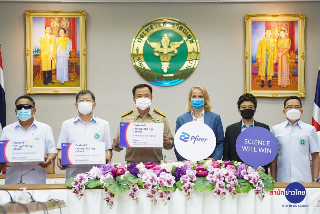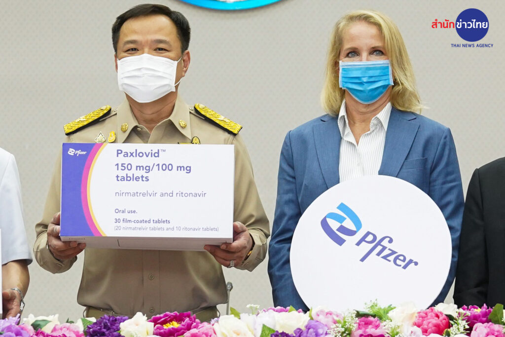 11 เม.ย.2565 ที่ กระทรวงสาธารณสุข จ.นนทบุรี นายอนุทิน ชาญวีรกูล รองนายกรัฐมนตรีและรัฐมนตรีว่าการกระทรวงสาธารณสุข(สธ.) เป็นประธานพิธีส่งมอบยาแพ็กซ์โลวิด (Paxlovid) ระหว่างกระทรวงสาธารณสุข โดย นพ.สมศักดิ์ อรรฆศิลป์ อธิบดีกรมการแพทย์ และ น.ส.เด็บบราห์ ไซเฟิร์ท กรรมการผู้จัดการใหญ่ บริษัท ไฟเซอร์ (ประเทศไทย) จำกัด ในจำนวนการจัดซื้อ 50,000 คอร์ส รวม 1.5 ล้านเม็ด